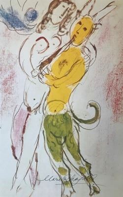 Marc Chagall Lithograph, Marc Zakharovich Chagall was a Russian-French artist of Belarusian Jewish origin. An early modernist, he was associated with several major artistic styles and created works in virtually every artistic format, including painting, book illustrations, stained glass, stage sets, ceramic, tapestries and fine art prints.
