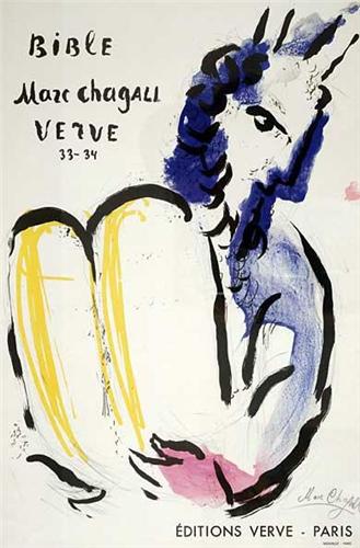 Marc Chagall ,1887 - 1985 ,Moses and Tables of the Covenant ,Lithographic poster ,63x41 cm ,Signed. , , ,G.Talpir Collection, Tel Aviv. A Gift from the artist. , ,