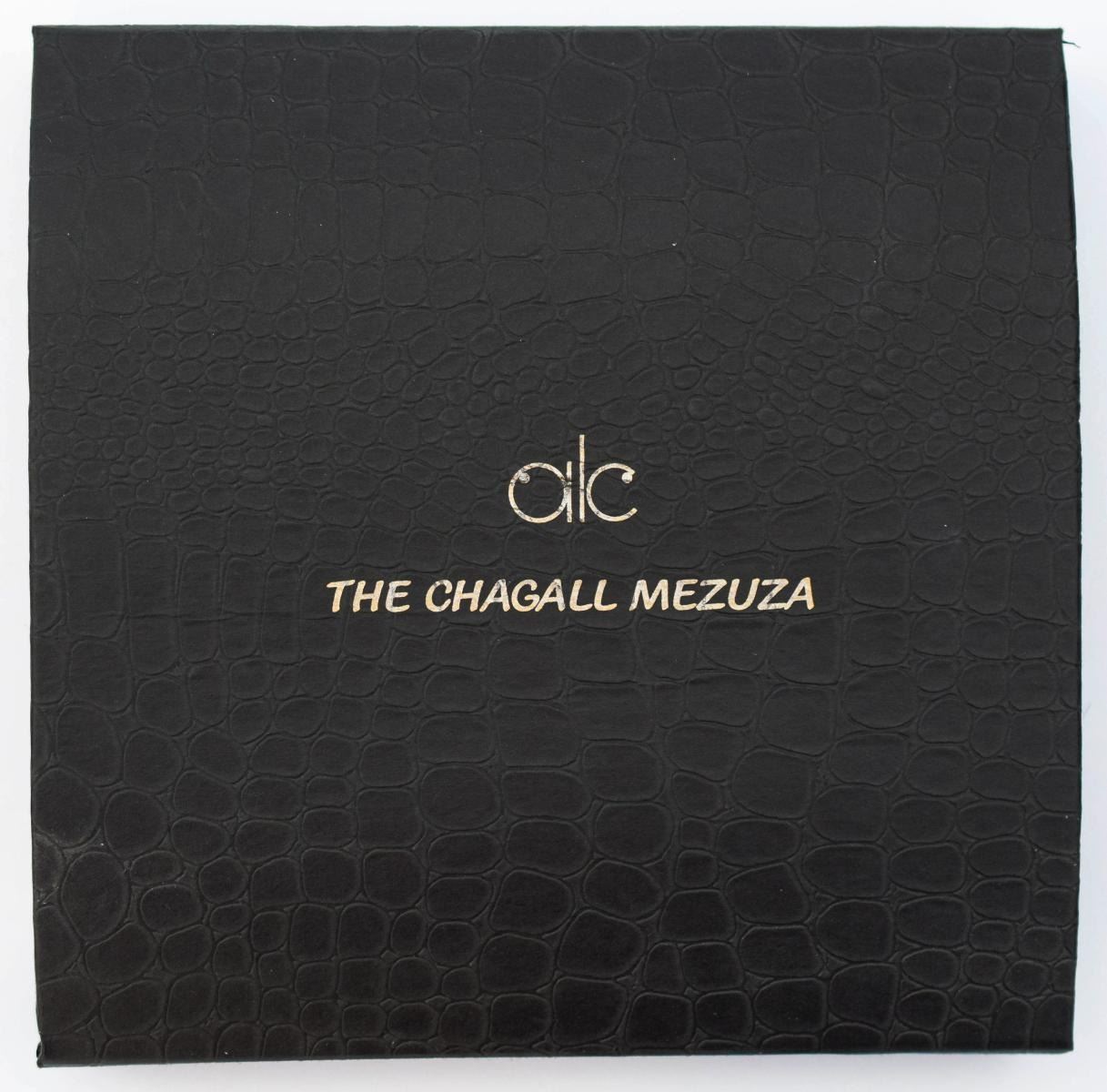 Artist: Marc Chagall . Medium: Mezuzah - silkscreen on 24K gold plated bronze. Title: 12 Tribes Hadassah Windows - Gad. Size (Unframed): 5" x 1.5". Limited Edition: Edition of 1800. Reference# 15778.