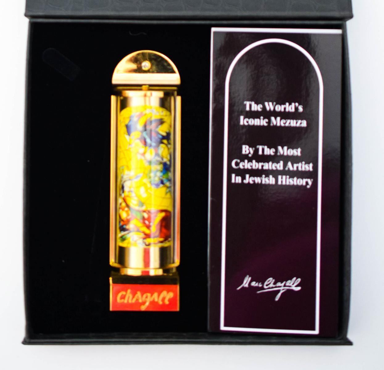 Artist: Marc Chagall . Medium: Mezuzah - silkscreen on 24K gold plated bronze. Title: 12 Tribes Hadassah Windows - Naphtali. Size (Unframed): 5" x 1.5". Limited Edition: Edition of 1800. Reference# 15770.