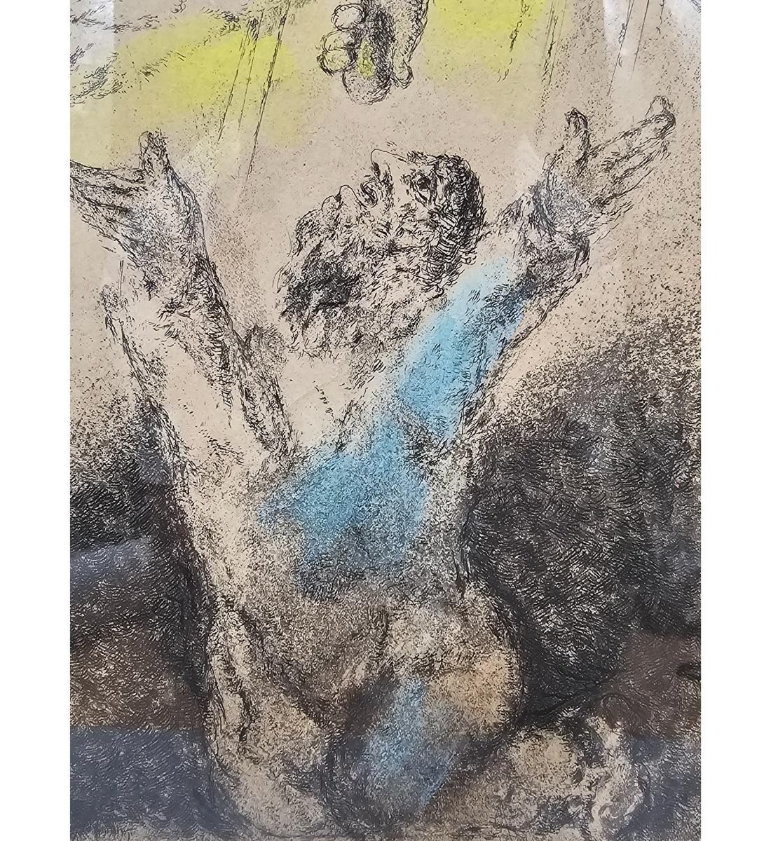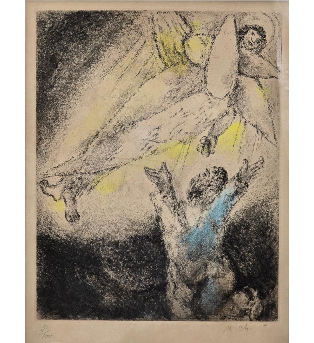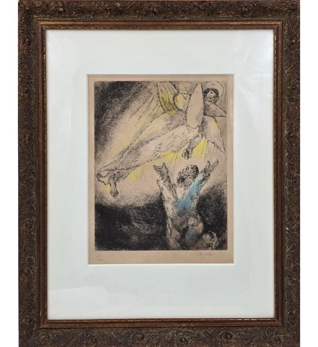 Marc Chagall 1887-1985 - Pencil Signed Initials, Signed In Plate & Numbered 31/100 Limited Edition Hand Colored Etching On Arches Paper, "Vision d'Esaie de la Bible". Frame Measure 24 3/4" X 20 1/4", Sight 21" X 16". Provenance: Private Estate South Florida.