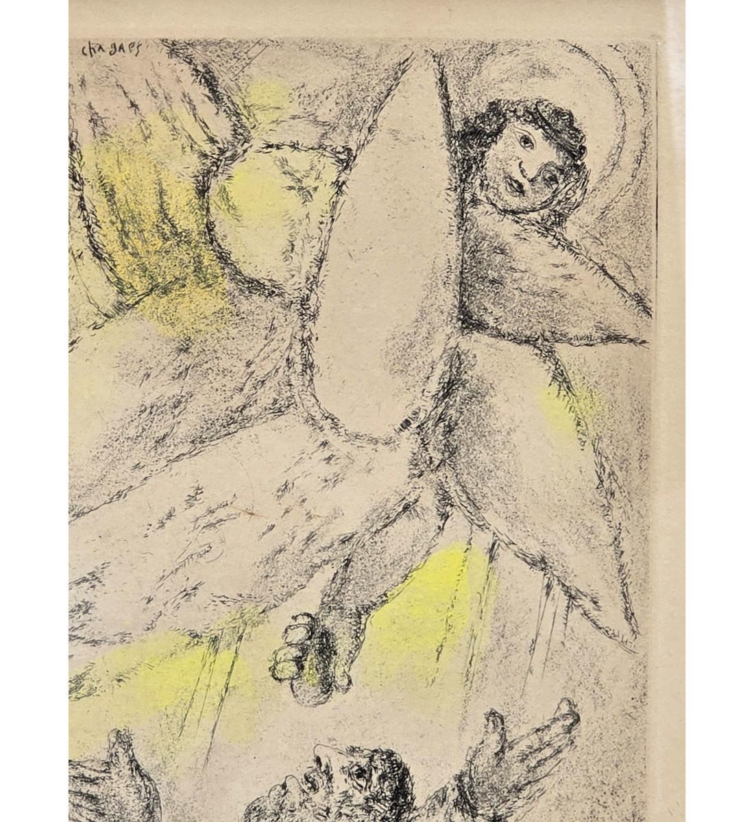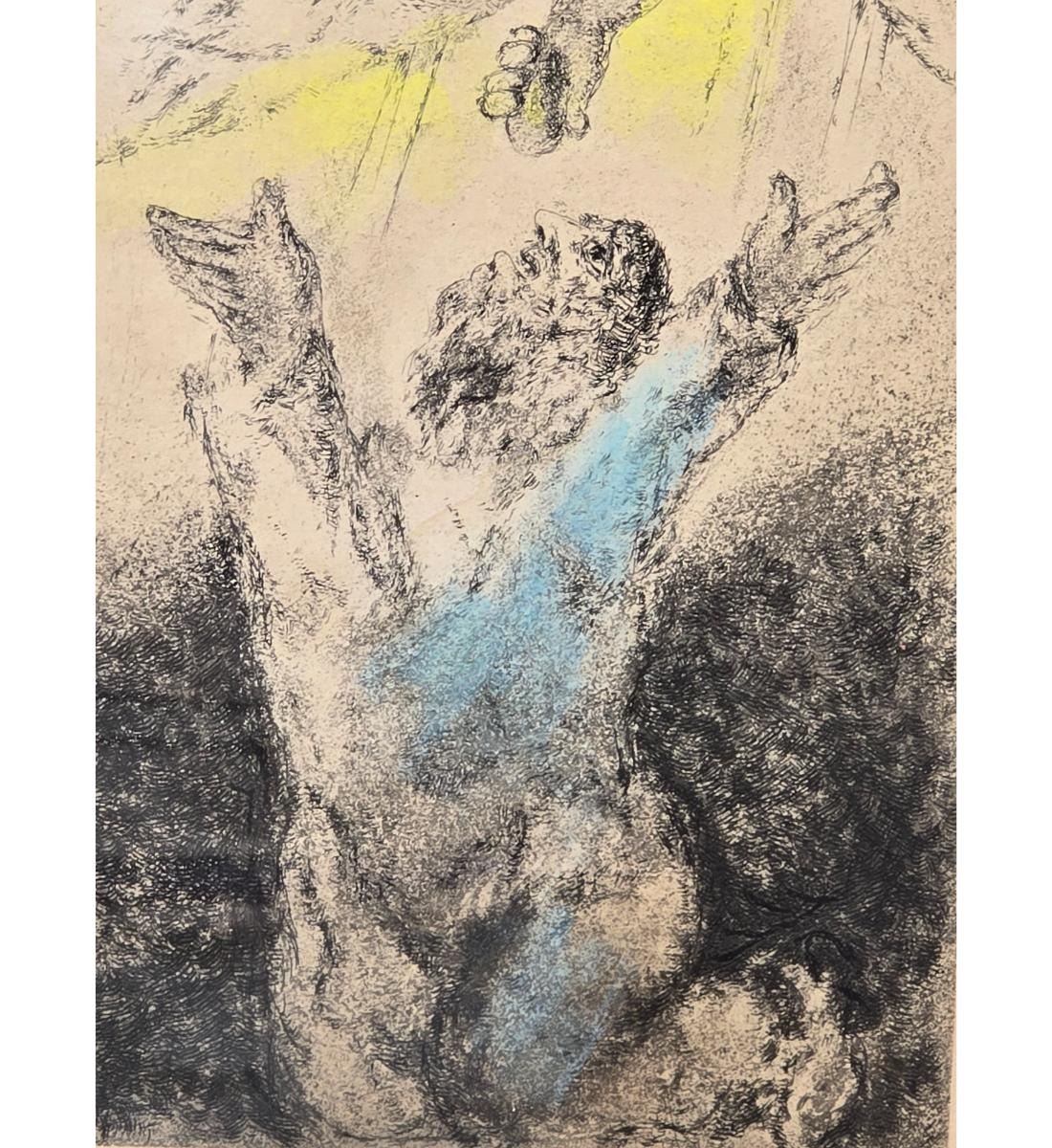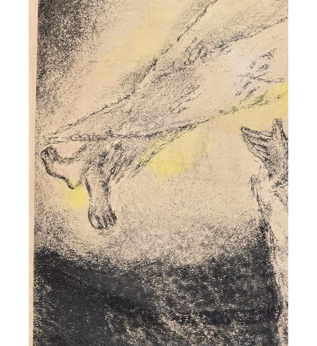 Marc Chagall 1887-1985 - Pencil Signed Initials, Signed In Plate & Numbered 31/100 Limited Edition Hand Colored Etching On Arches Paper, "Vision d'Esaie de la Bible". Frame Measure 24 3/4" X 20 1/4", Sight 21" X 16". Provenance: Private Estate South Florida.
