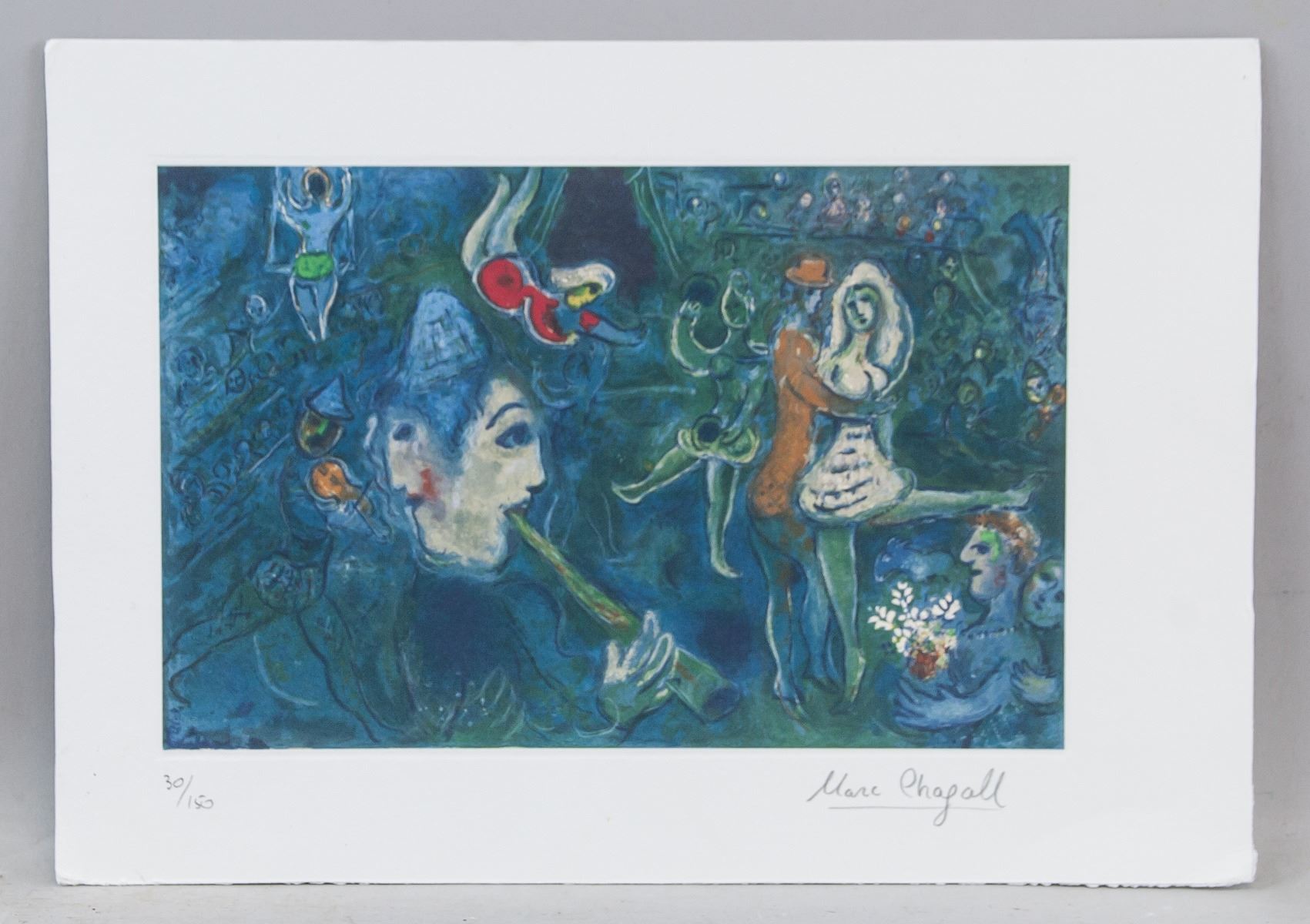 Lithograph on paper. Featuring a surrealist composition of portraits. Signed Marc Chagall (1887-1985, French) and inscribed 30/150 on the lower right and lower left corner, respectively in pencil. 21 x 30 cm (8.3 x 11.8 inches). PROVENANCE: Upper New York estate