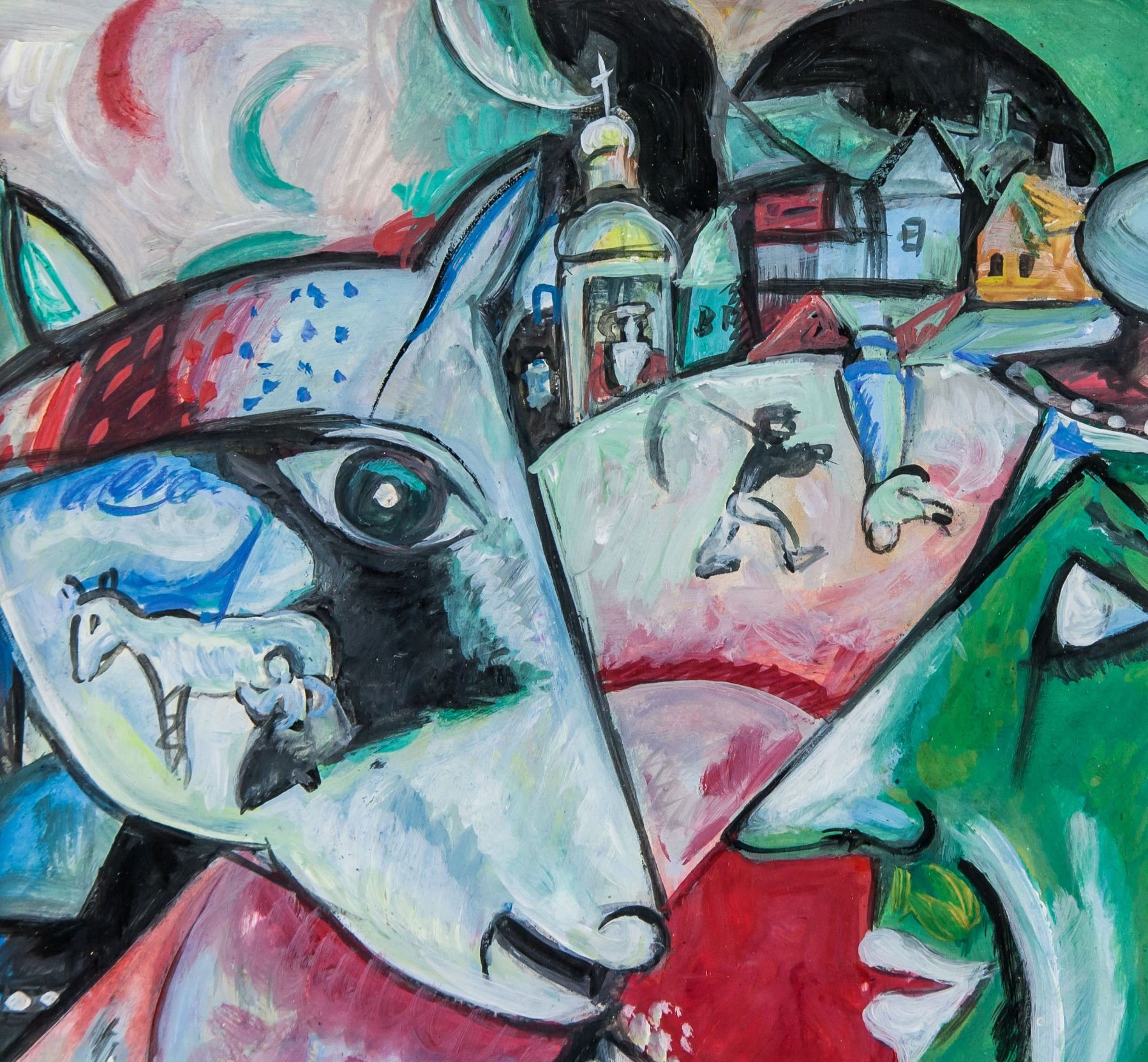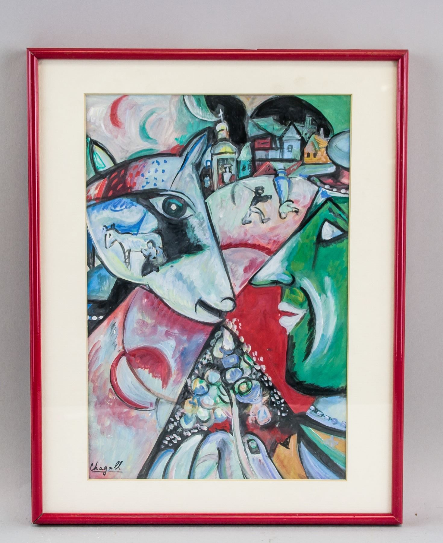 Gouache on paper, framed. Featuring surreal fantasy theme. Signed Chagall on the lower left corner. Attributed to Marc Chagall (1887-1985, Russian-French). 11.2 x 7.9 in. (28.5 x 20 cm). PROVENANCE: Southern Ontario estate