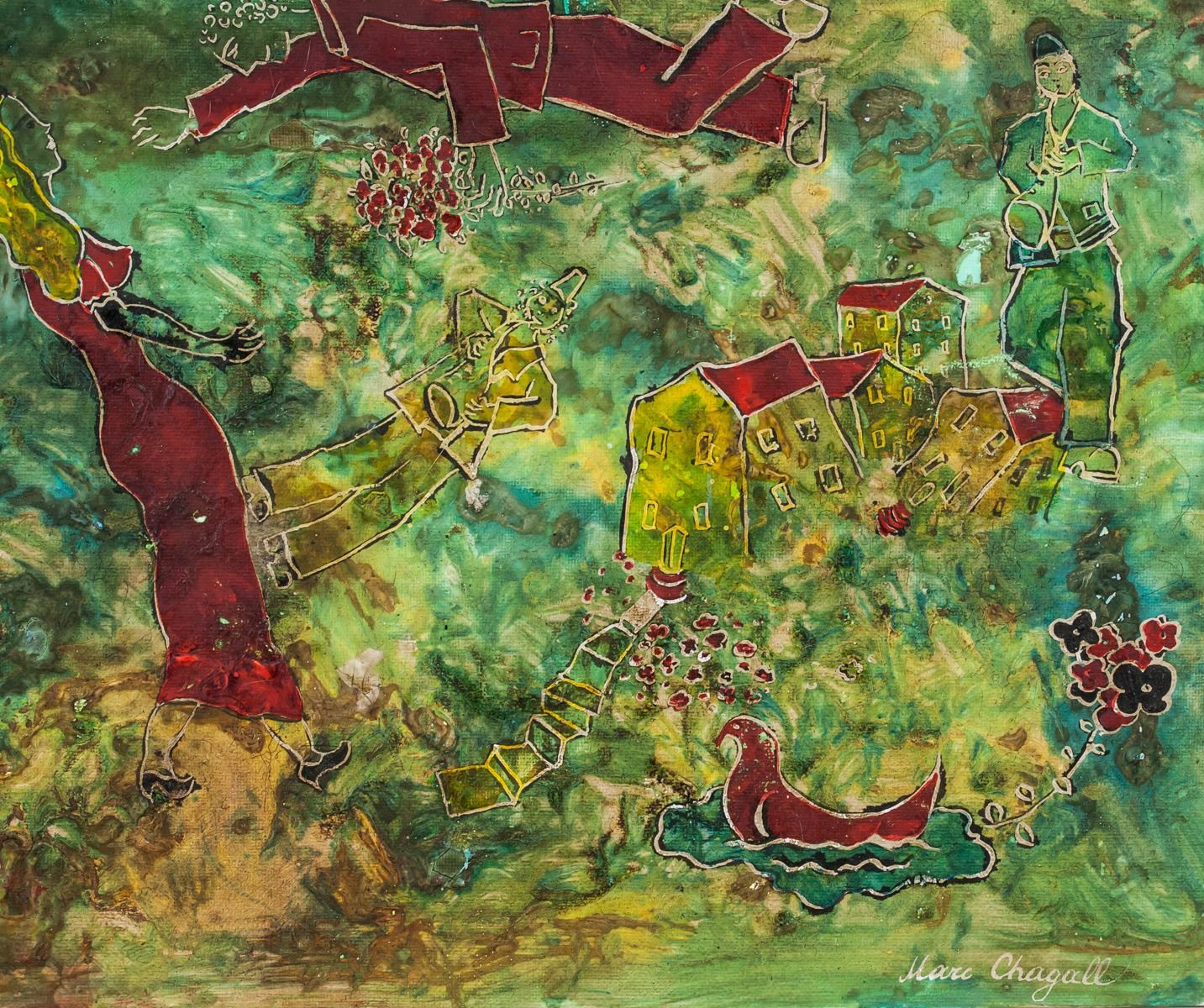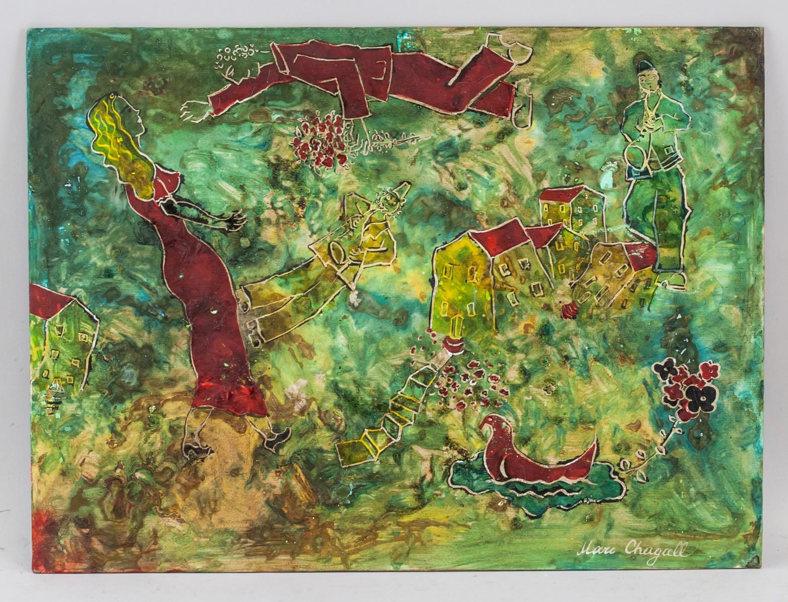 Oil on canvas, stretched. Featuring a surrealist landscape composition. Signed Marc Chagall on the lower right corner. Attributed to Marc Chagall (1887-1985, Russian-French). 30 x 40 cm (11.8 x 15.8 inches). PROVENANCE: This lot carries limited provenance from a Southern Italian estate