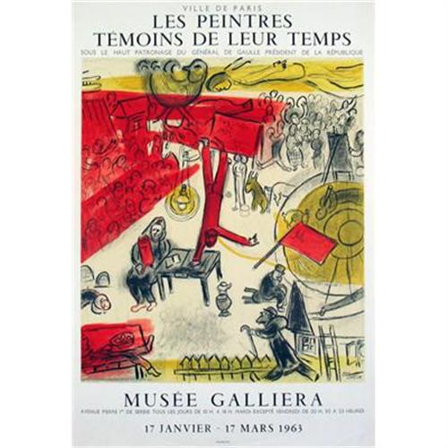Notes:See Sorlier page 92 For the yearly "Painters, witness of their time", Chagall used a study of his 1937 painting "The Revolution". It is, as so often with Chagall, crowded with his childhood memories, religion and of course, the Russian revolution. Splendid, fascinating. Lithography by Charles Sorlier for Mourlot, 1963, 3000 prints. The poster measures 30 x 20 inches.