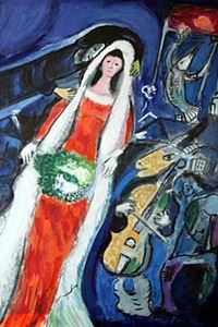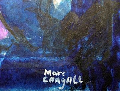 In the manner of Marc Chagall, bearing the signature oil on paper. Unframed dimensions approx 19 x 13
