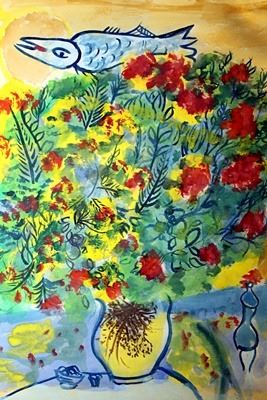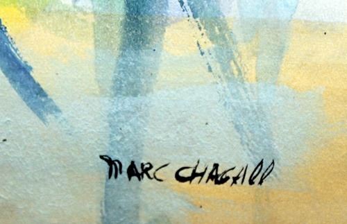 In the manner of Marc Chagall, bearing the signature oil on paper. Unframed dimensions approx 19 x 14