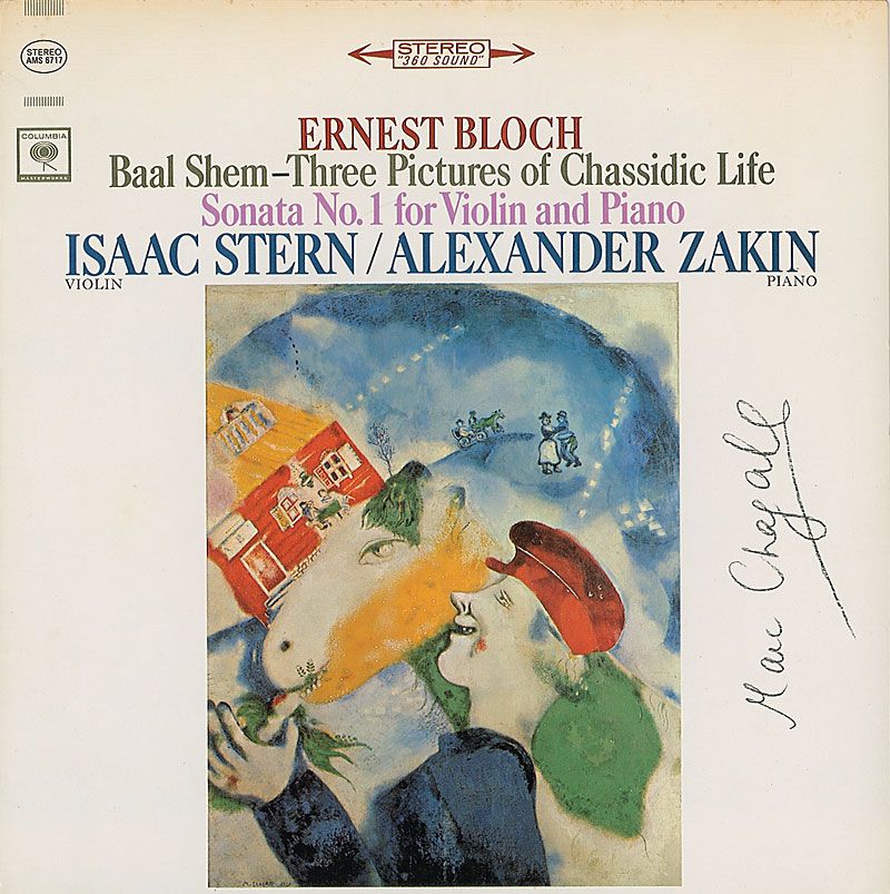 Ernest Bloch: Baal Shem & Sonata No. 1 album signed vertically in the right border in black artist’s crayon by Chagall. In fine condition, with slight foxing and toning to the top. The record is included.