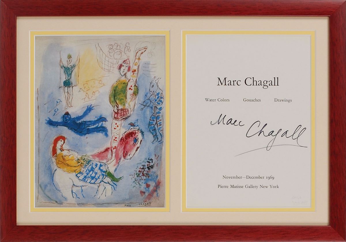 Exhibit catalog from a show at the Pierre Matisse Gallery in New York in late 1969, 7 x 9.25, 44 pages, nicely signed on the title page in black felt tip. Attractively double-matted and framed to display the front cover and signed page. In fine condition.