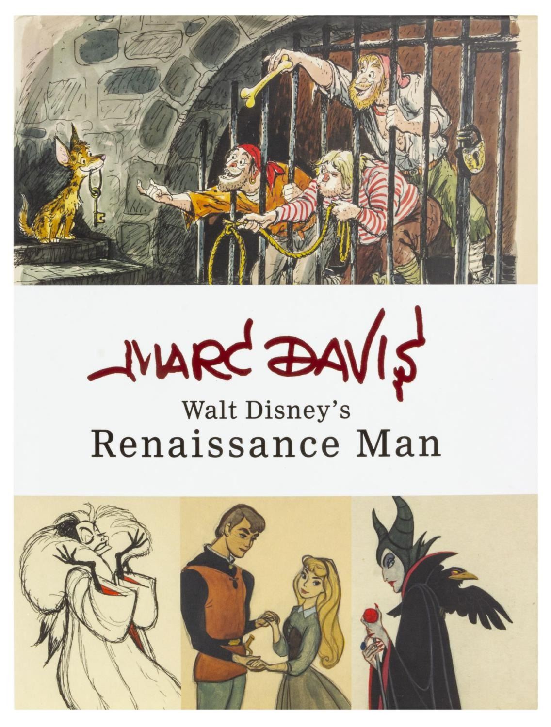(Disney Editions, 2014) A multi-signed first edition of Marc Davis: Walt Disney's Renaissance Man. This book delves into the career and art style of Marc Davis, providing a wealth of information on the Disney Legend from the people who knew his story best. The title page has been signed by Alice M. Davis, Lella F. Smith, Bob Kurtz, Charles Solomon, Don Hahn, and Mindy Johnson, all of whom contributed to the book. Measuring 12.25" x 9.5", the book is in very good condition with some wear to the edges of the dust jacket.