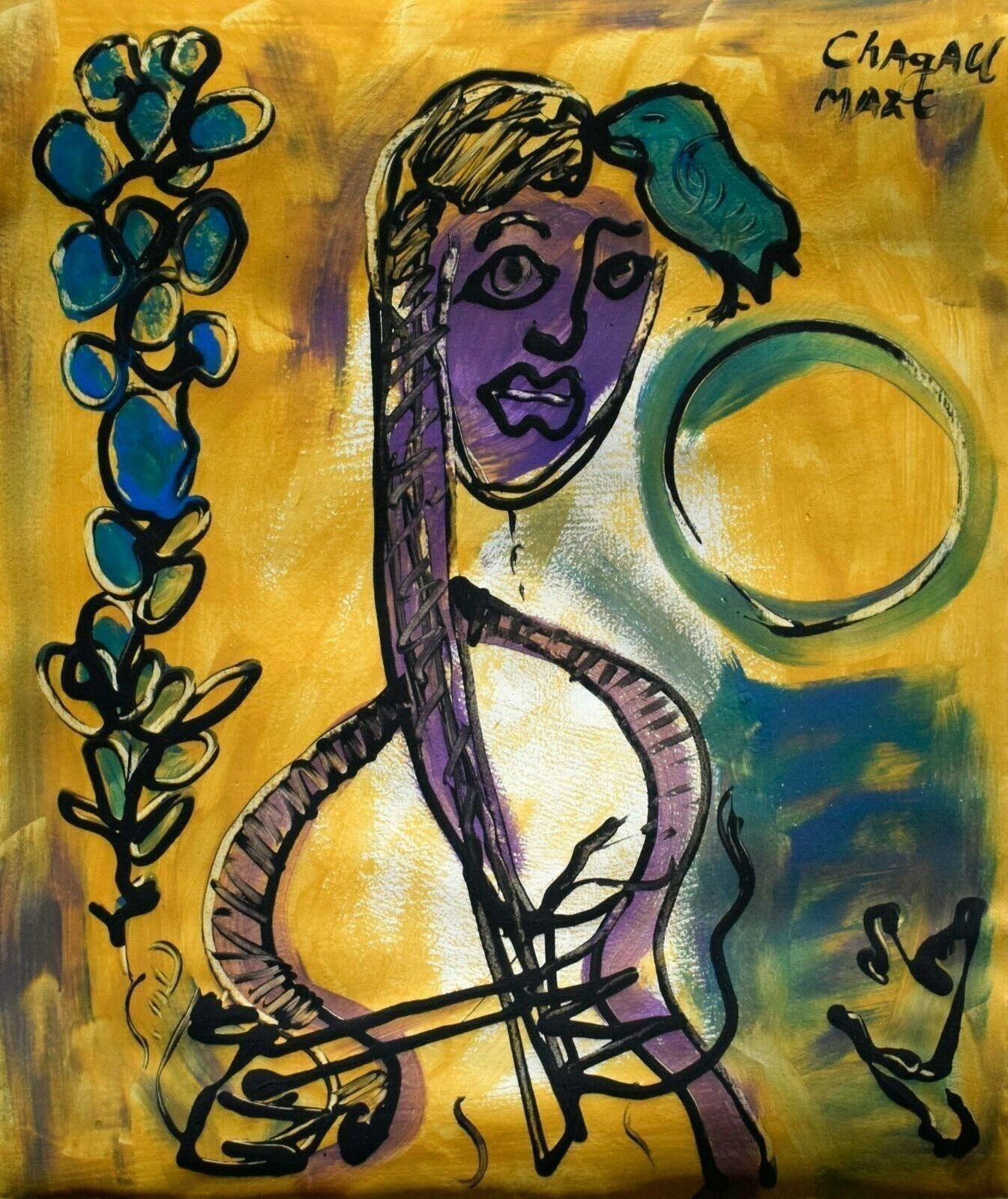 A Marc Chagall painting on canvas, signed, mounted and framed.