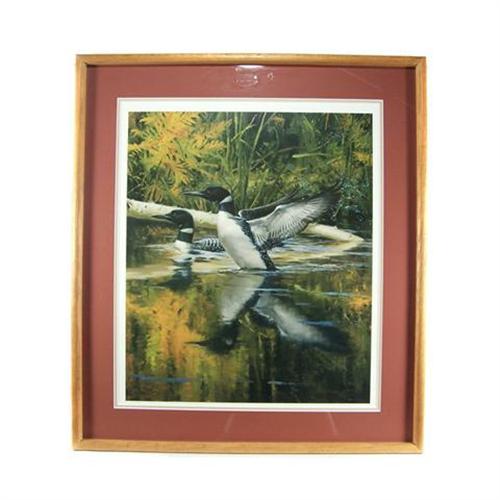 Reproduced in 1992 from he artist's original painting on pH neutral, archival paper using fade resistant inks. This sis a strict limited edition print, number 548 from an edition of 950 signed and numbered prints, and 95 artist proofs. This print was personally inspected and signed by the artist, and sequentially numbered to verify the authenticity of this fine art limited edition print. This picture depicts the beautiful loons in the water, with deep woodland tones. It is framed and matted and in excellent condition.