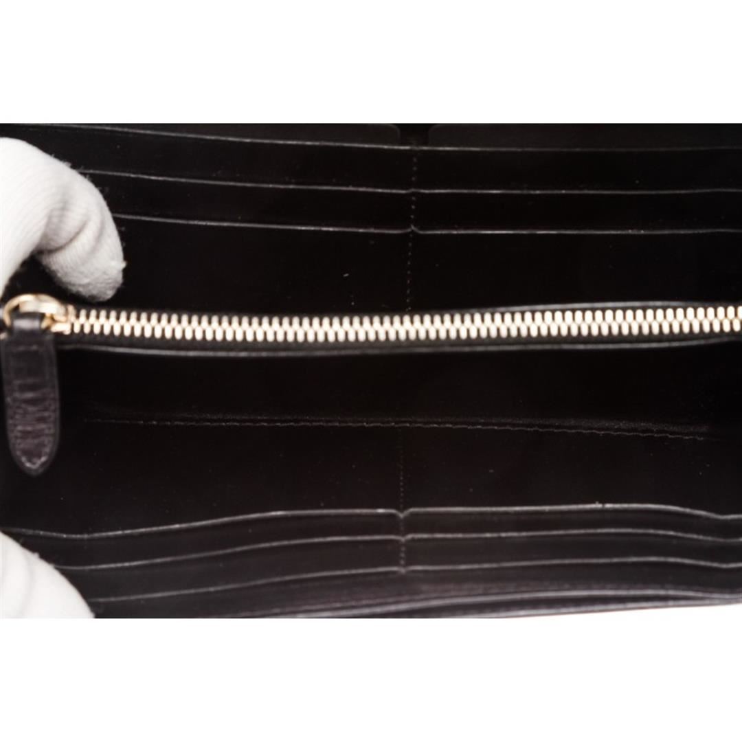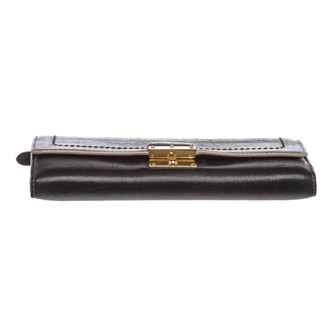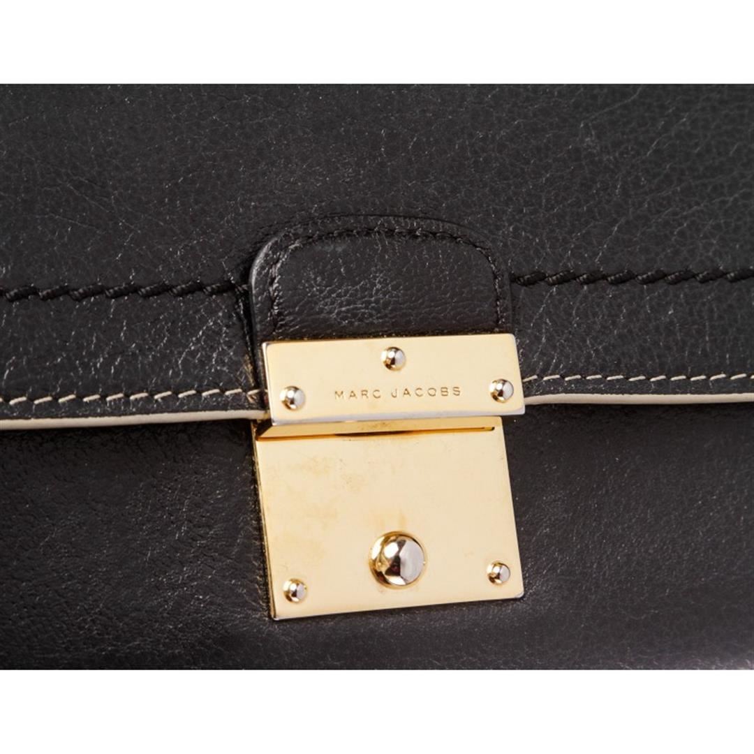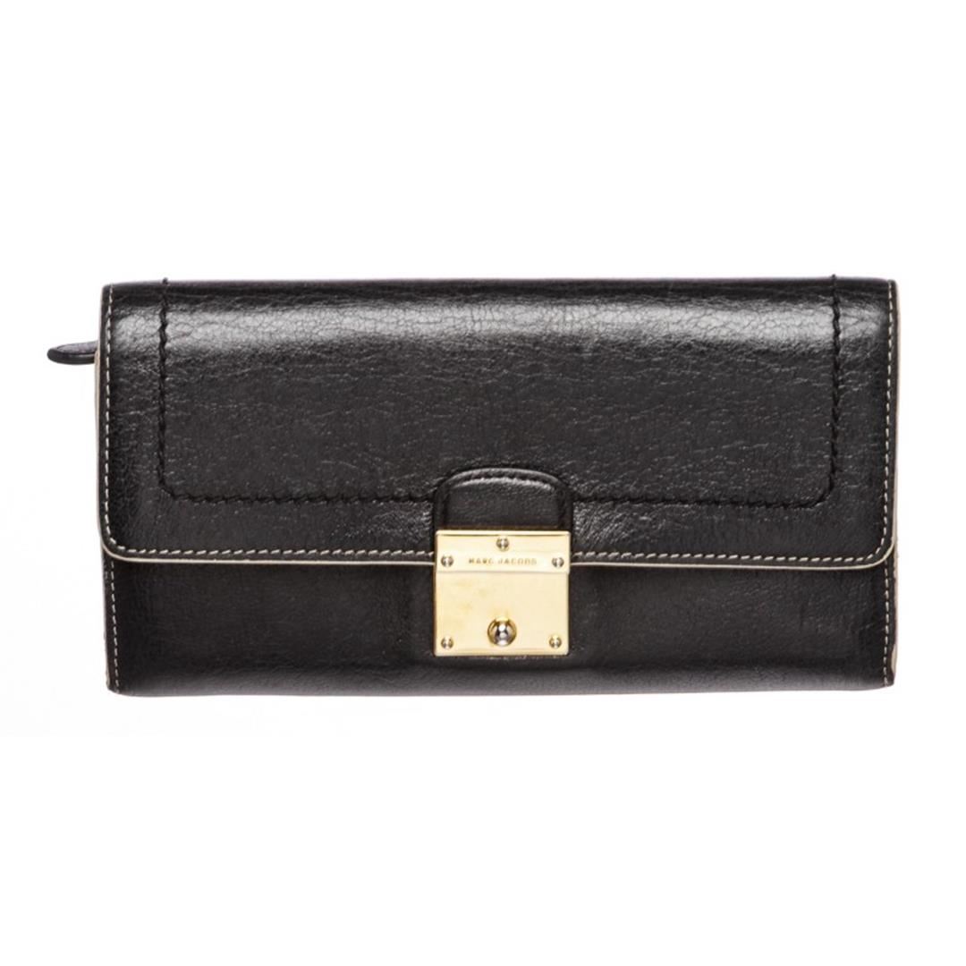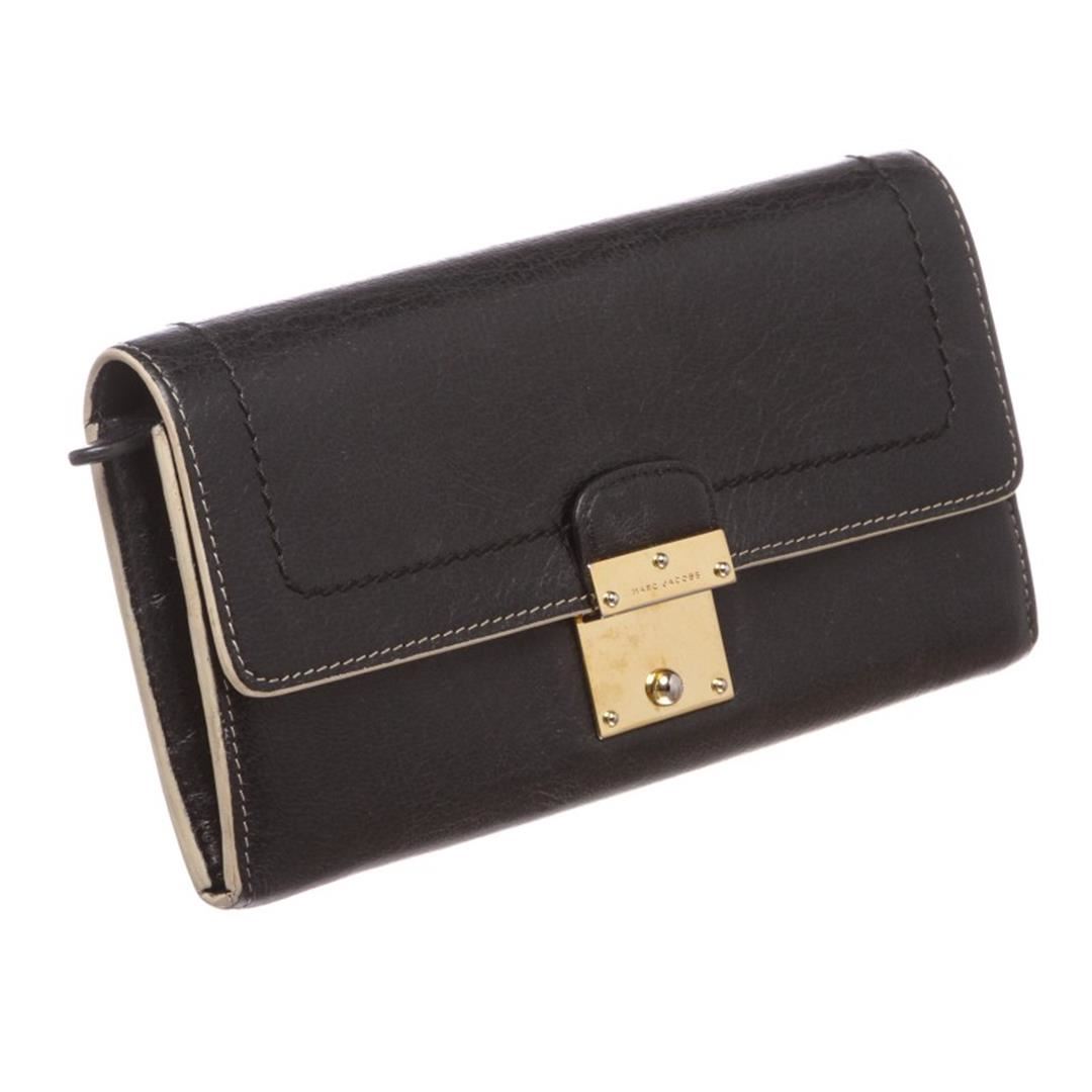 One Marc Jacobs Black Leather Long Wallet. Overall flap push-lock closure. Interior is leather lined and contains two compartments with a zipper pocket partition, twelve credit cardip pockets and four billfoldip pockets. Item is pre-owned.