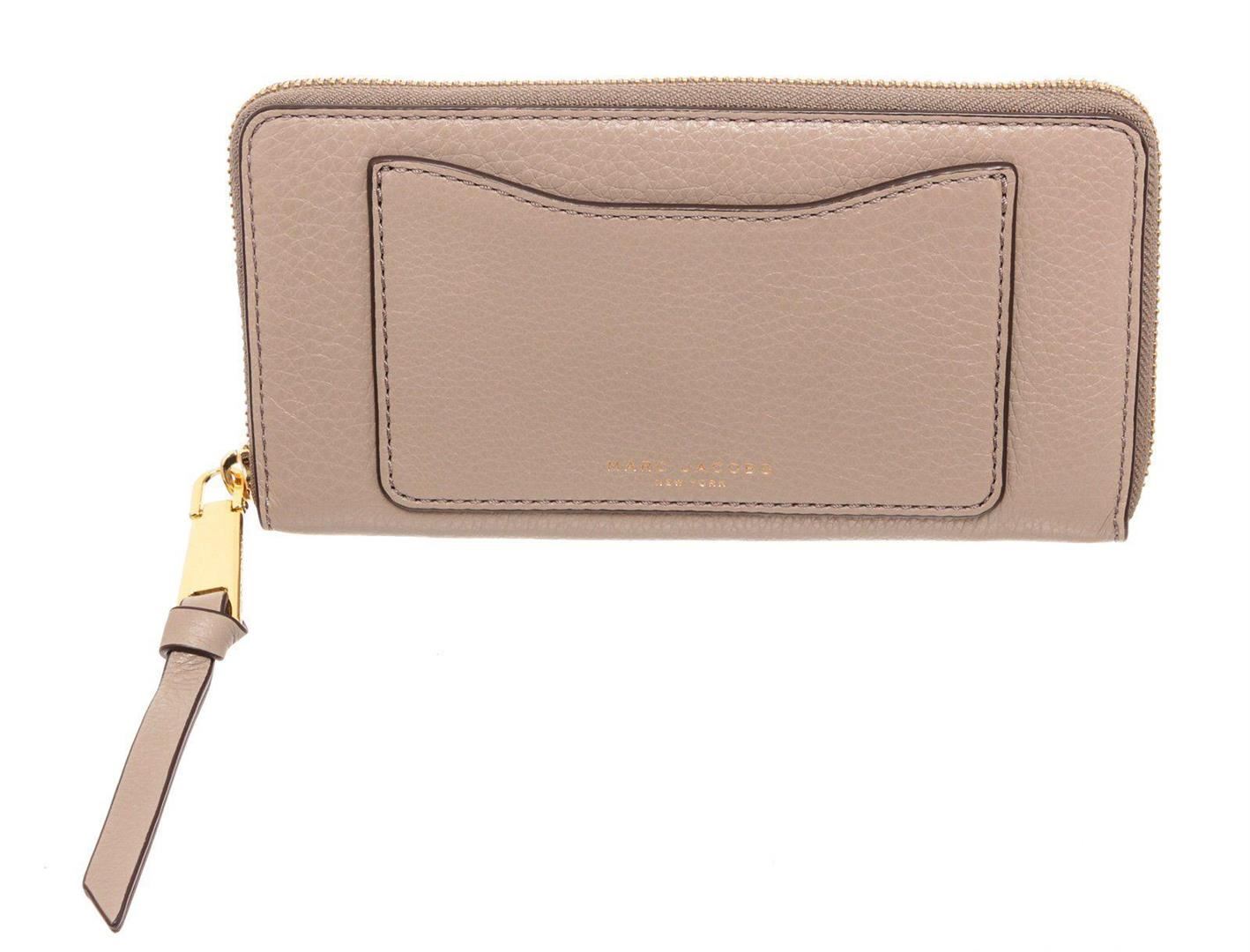 Marc Jacobs grey leather zippy wallet with gold-tone hardware, single slip pocket at front, five interior compartments; one with zip closure, twelve card slots and overall zip around closure. Measurements: Length: 8.15 in / 21 cm Width: 0.8 in / 2 cm 4 in / 10 cmCONDITION: Pre-Owned Good overall, please see photographs for detail.