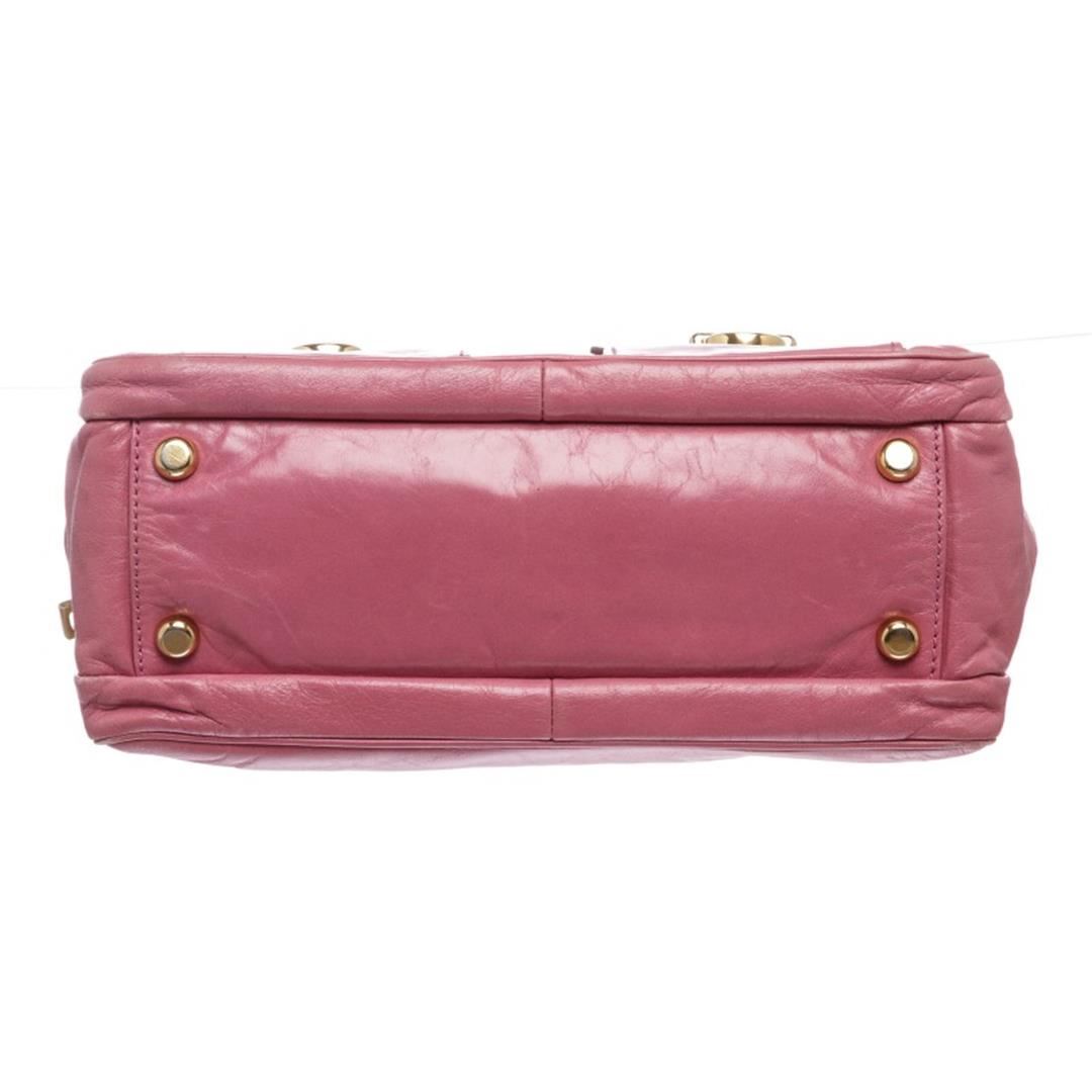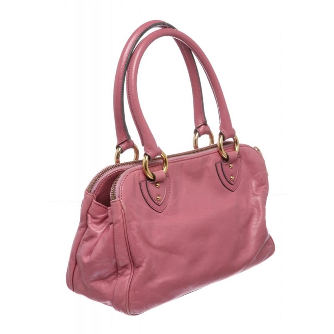 One Marc Jacobs Pink Leather Blake Shoulder Handbag. Marc Jacobs pink leather Blake shoulder handbag. Gold tone hardware, dual rolled handles, zip top closure. Taupe fabric lining, side zip pocket, middle pocket divider.