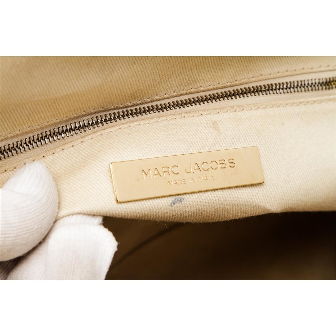 Quilted leather, gold tone hardware, dual rolled handles, detachable chain link shoulder strap and metal twist closure. Interior is beige fabric lined with one side zipper pocket.