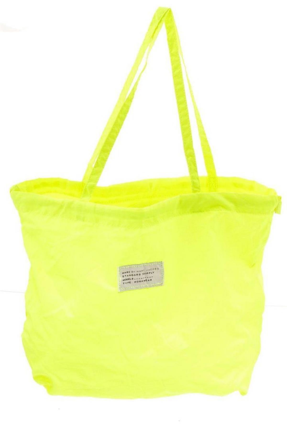 Marc By Marc Jacobs neon yellow nylon tote bag, stitched canvas logo placard at front, dual flat handles, neon yellow nylon interior lining, one interior slip pocket and overall open top. Measurements: Length: 17.15 in / 44 cm Width: 4 in / 10 cm 13.75 in / 35 cmCONDITION: Pre-Owned Good overall, please see photographs for detail.