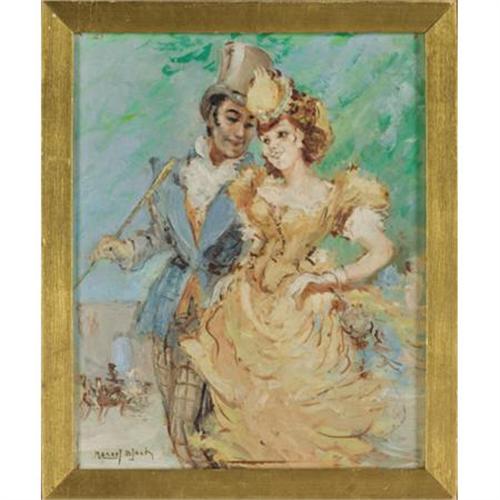 <B>MARCEL BLOCH (French, b. 1884)</B></I><BR><I>Studies with Dancers and their Admirers </B></I>(pair)<BR>Oil on masonite<BR>10-1/2 x 8-1/2 inches (26.7 x 21.6 cm) each<BR>Each signed lower left: <I>Marcel Bloch</B></I><BR> <B>Condition Report:</B> Very good condition.<BR><BR><b>Shipping:</b> Framed - without Glass, Small (<a target="_blank" href="http://www.heritageauctions.com/common/shipping.php">view shipping information</a>)