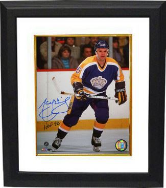 Marcel Dionne is a retired Canadian professional ice hockey centre who played 18 seasons in the National Hockey League for the Detroit Red Wings, Los Angeles Kings and New York Rangers. Marcel Dionne was inducted into the Hockey Hall of Fame in 1992. Marcel Dionne has hand signed this Los Angeles Kings 8x10 Photo with HOF 92 inscription. MAB Hologram and Certificate of Authenticity from Athlon Sports. Custom White Mat and Premium Black Color Framed as shown.