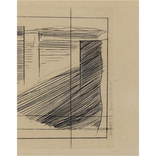 <B>Marcel Duchamp</B></I> <B>(French 1887-1968)<BR></B></I><I>Coffee Mill<BR></B></I>Etching<BR>7 x 3 inches (17.8 x 7.6 cm)<BR>Signed in pencil at lower left <I>Marcel Duchamp<BR></B></I> <B>Condition Report:</B> Normal signs of wear as appropriate with age; slight toning. Matted and framed, not examined out of frame.<BR><BR><b>Shipping:</b> Framed - without Glass, Medium (<a target="_blank" href="http://www.heritageauctions.com/common/shipping.php">view shipping information</a>)