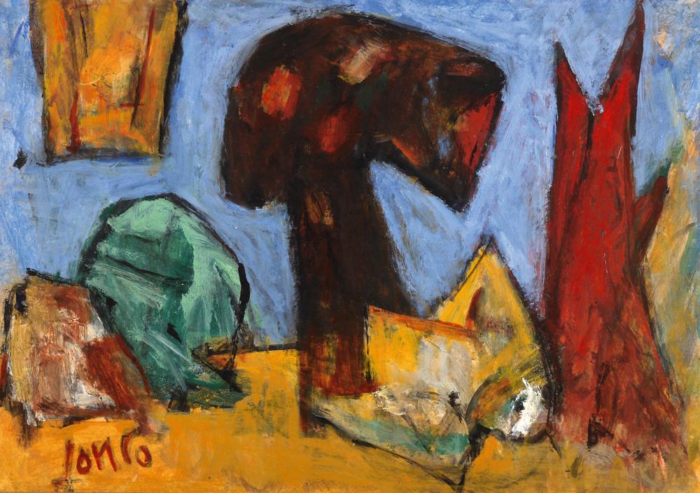 Marcel Janco, Israeli Art, 1895 - 1984, Abstract, 1960, Oil on cardboard, 35x50cm, Signed, dated and described on the reverse., , , , ,