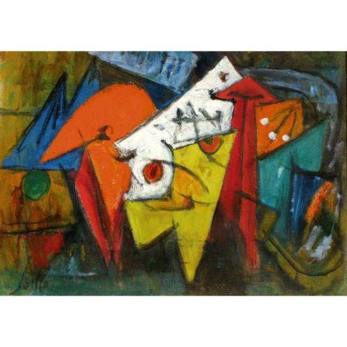 Marcel Janco, Romanian and Israeli Art, 1895 - 1984, Composition, Oil on canvas mounted on cardboard, 50x70cm, Signed. Janco atelier label on the reverse., , , , ,