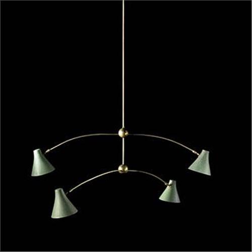 Marcel-Louis Baugniet<BR>Mobile ceiling lamp<BR>Belgium, 1958<BR>brass, enameled aluminum<BR>52 w x 46 d x 46 h inches<BR>There are three known examples of this form.<BR>Provenance: <BR>Private collection, Antwerp<BR>Literature: <BR><i>Hedendaags Design: Alfred Hendrickx en het Fifties-Meubel in Begi'</i>, Poulain, pg. 73<BR><BR>Condition of the item is not included in this description. Condition reports are available from Wright upon request. Wright strongly recommends that you review a condition report for each item on which you plan to bid.