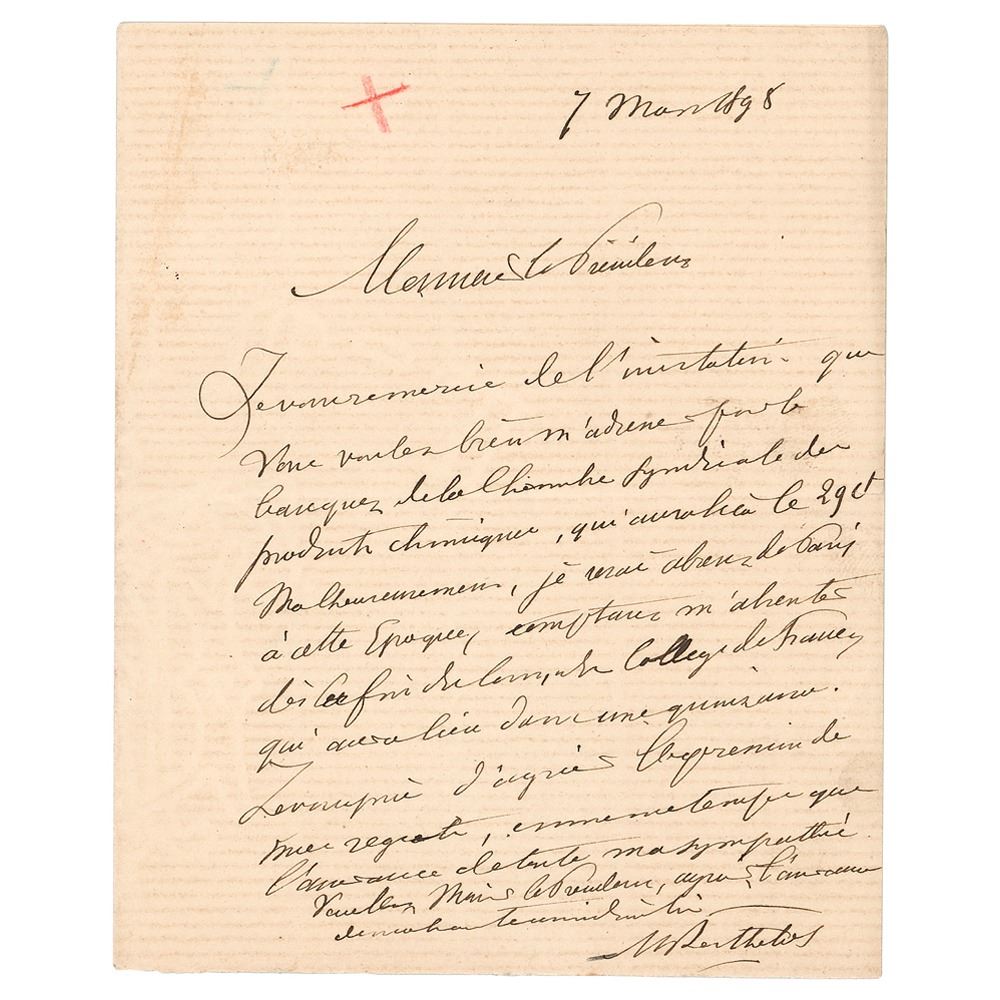 Untranslated ALS in French, signed “M. Berthelot,†one page, 4.25 x 5.25, March 7, 1898. In fine condition.