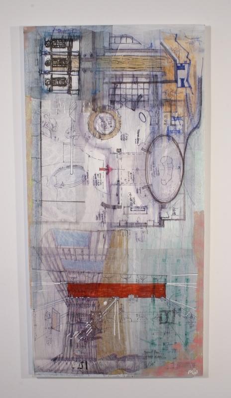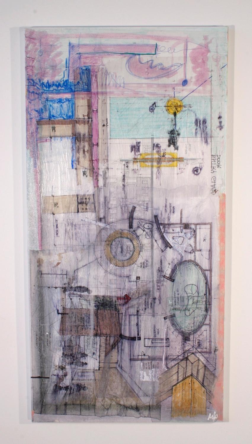 36h x 36w inches, Strati Collage, acrylic, marker, pen, pencil, ink, tracing paper on canavas, signed, dated