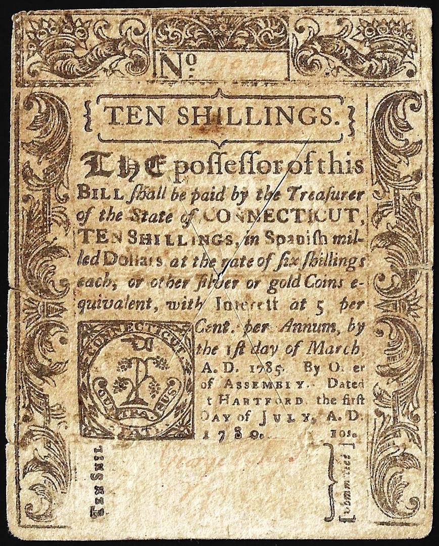 March 1, 1780 Connecticut Colonial Currency Note Cut Canceled