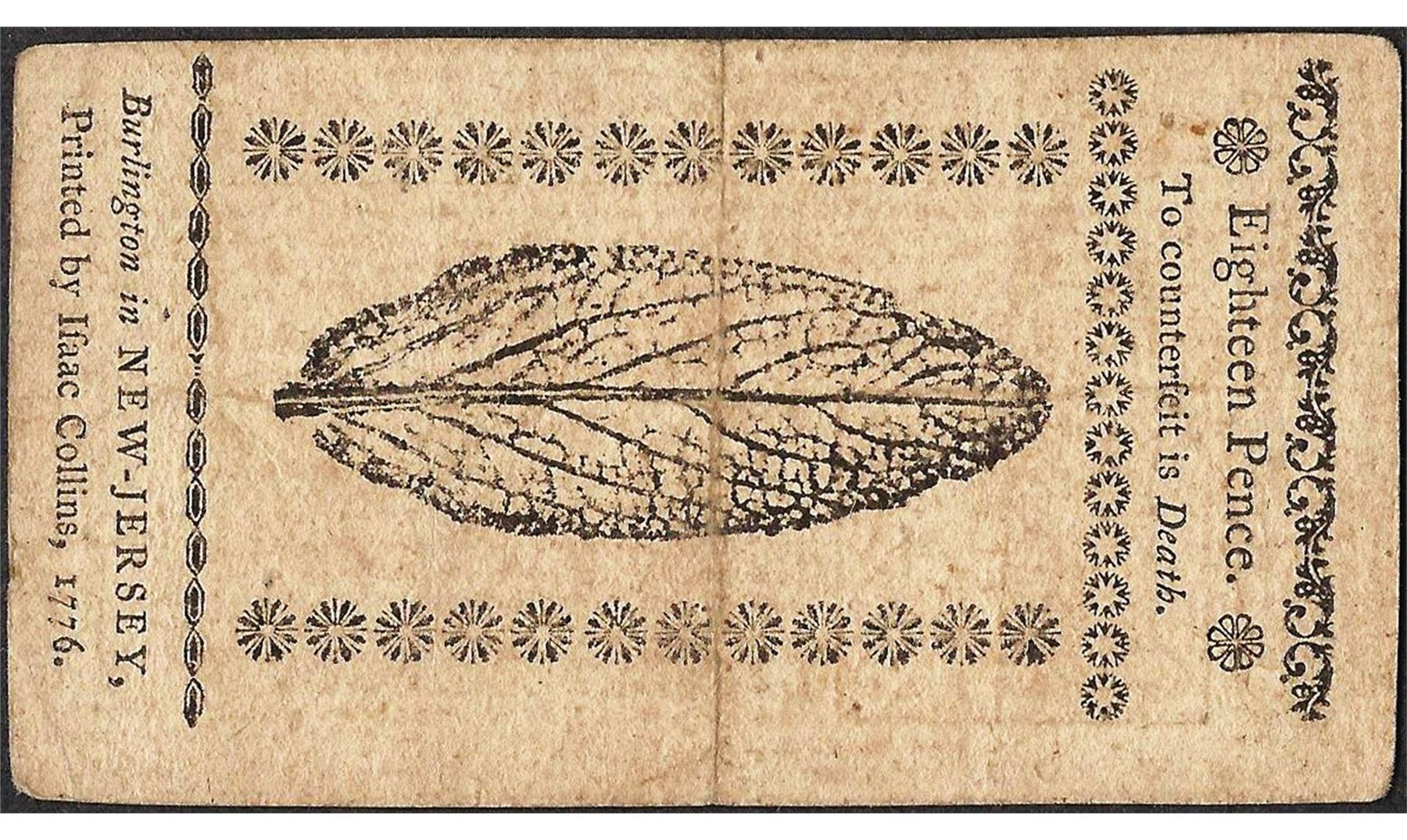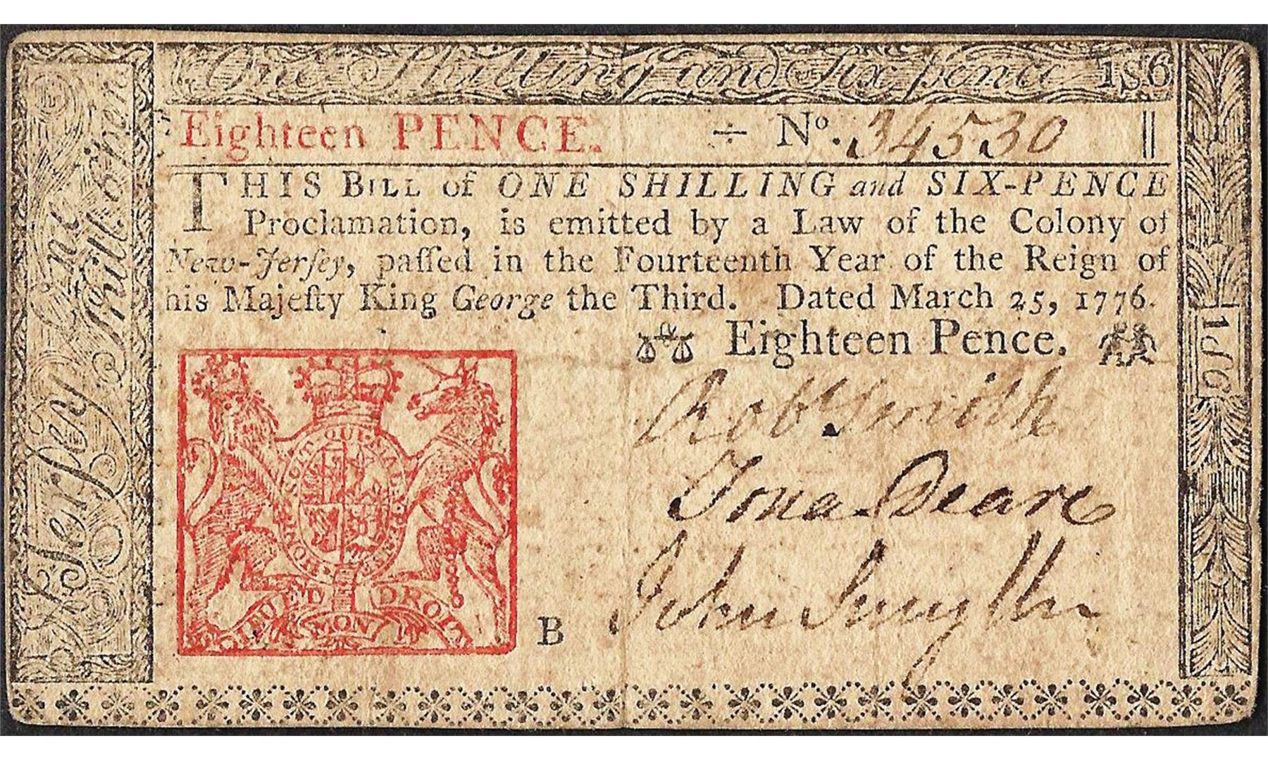 March 25, 1776 New Jersey Eighteen Pence Colonial Currency Note