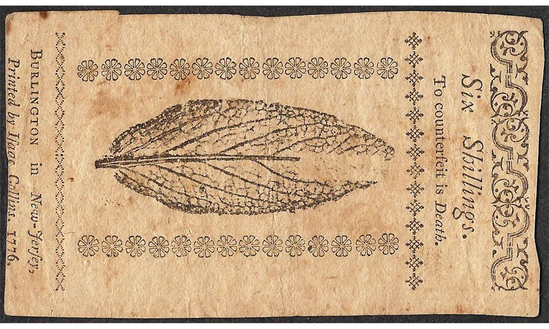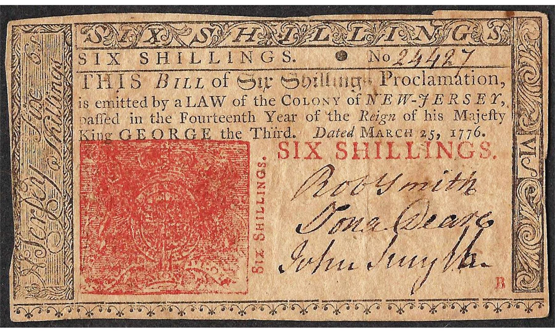 March 25, 1776 New Jersey Six Shillings Colonial Currency Note