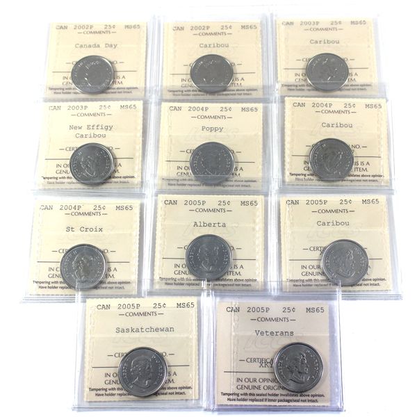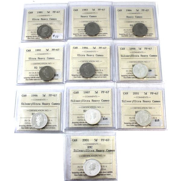 140 - 5-cent 1981-2001 ICCS PF67 10pcs.Colonial Acres Coins Ltd.