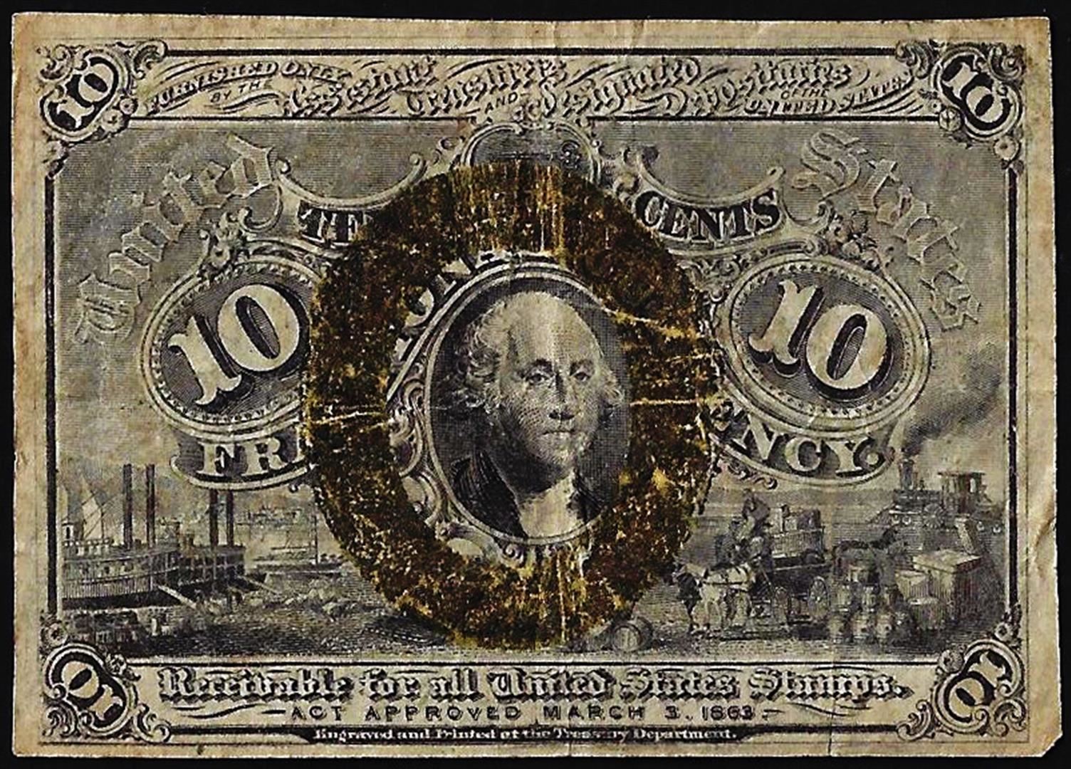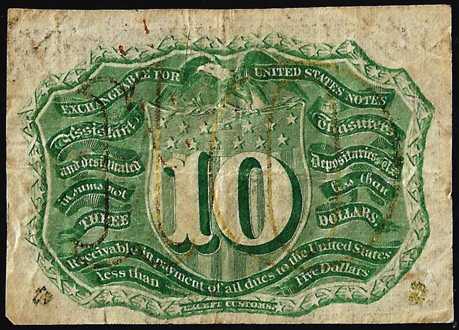 One March 3, 1863 10 Cents Second Issue Fractional Currency Note.