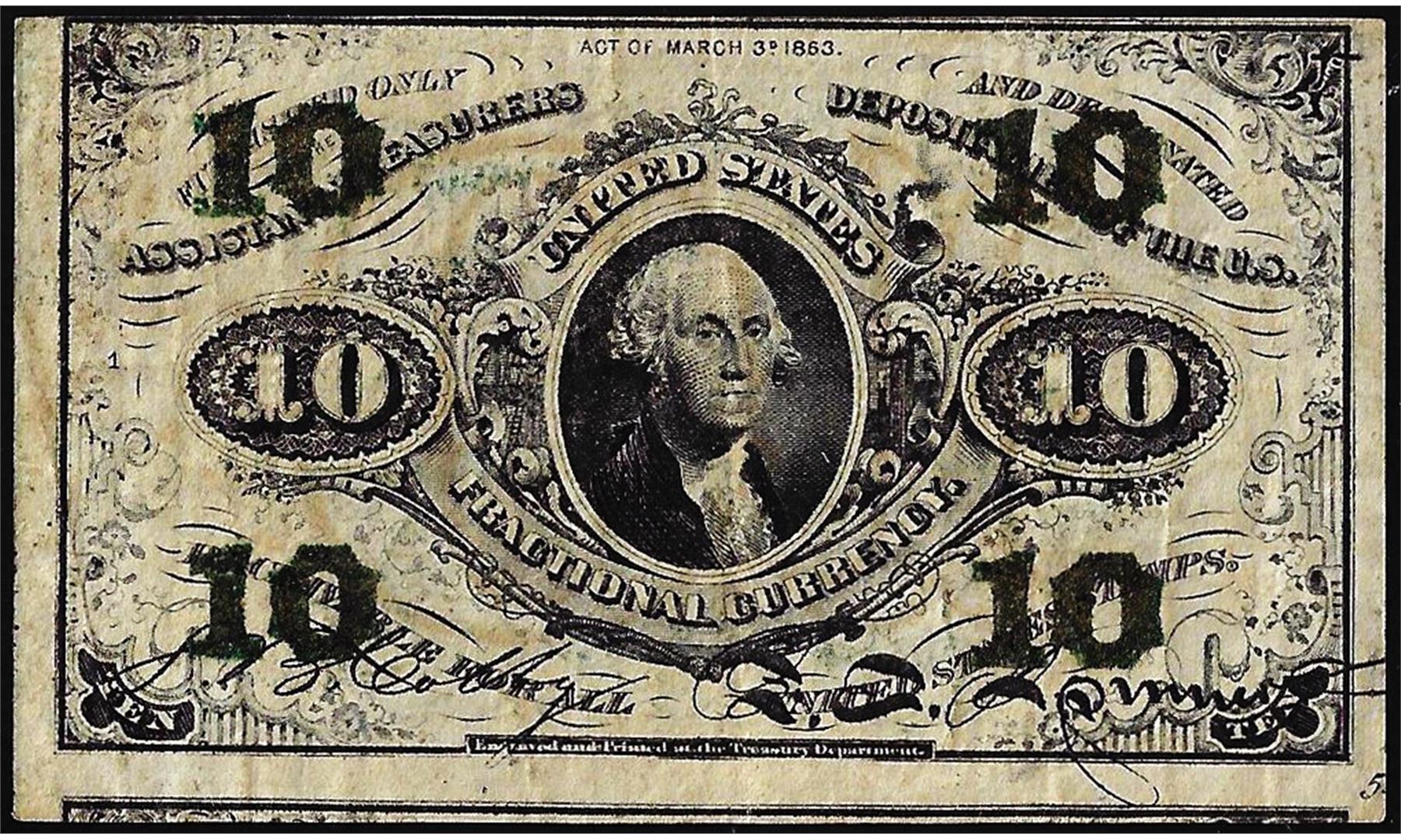 One March 3, 1863 10 Cents Third Issue Fractional Currency Note.
