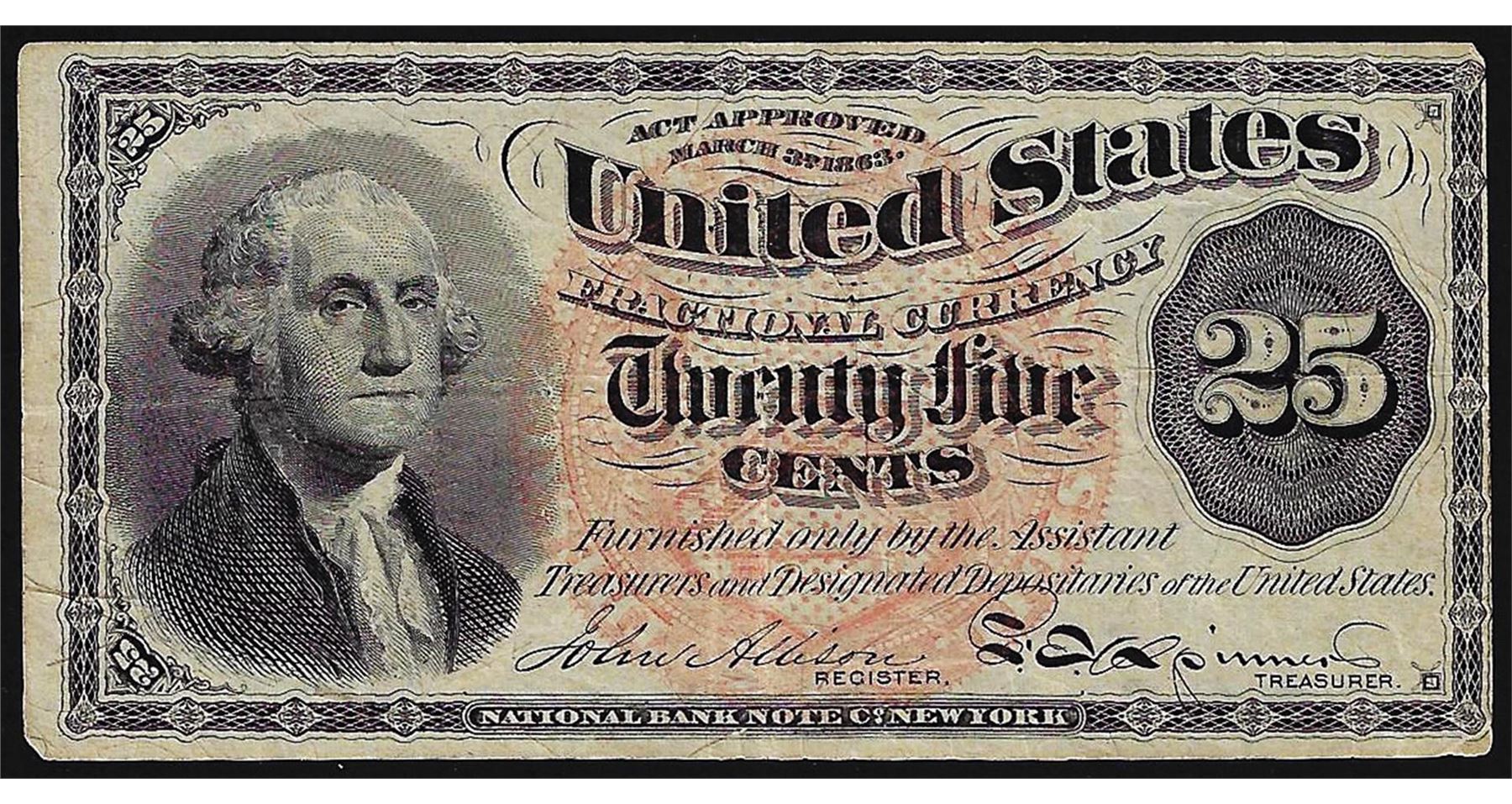 One March 3, 1863 25 Cent 4th Issue Fractional Note.