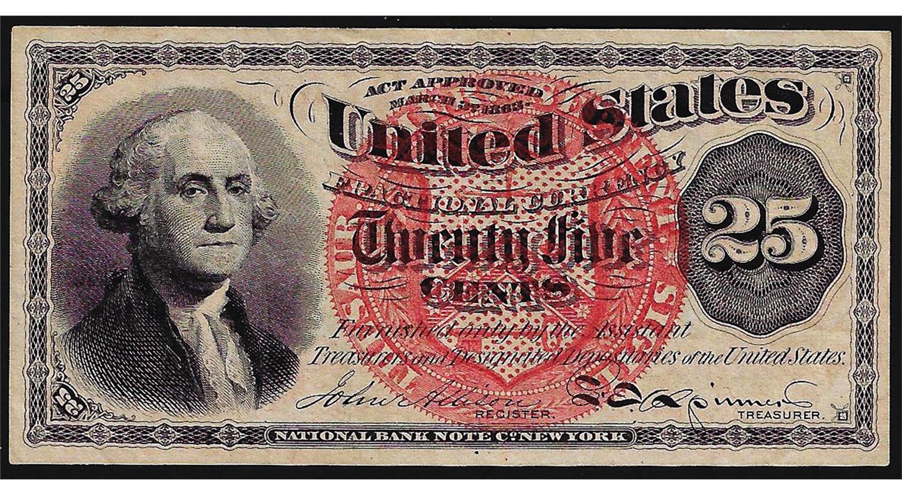 One March 3, 1863 25 Cents 4th Issue Fractional Note.