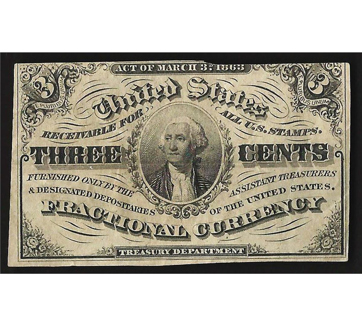 One March 3, 1863 3 Cent 3rd Issue Fractional Note.