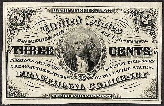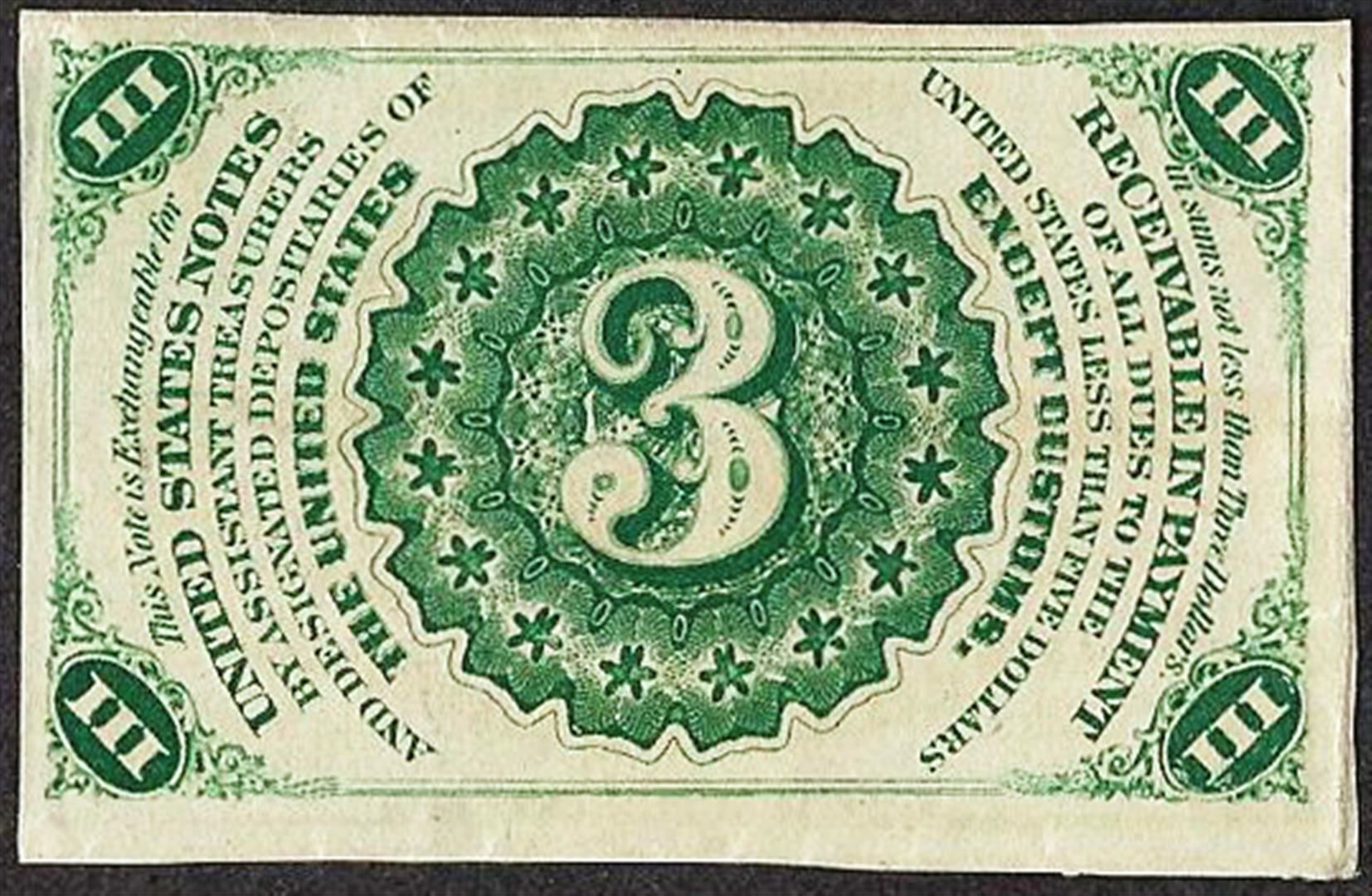 March 3, 1863 3 Cents Third Issue Fractional Currency Note