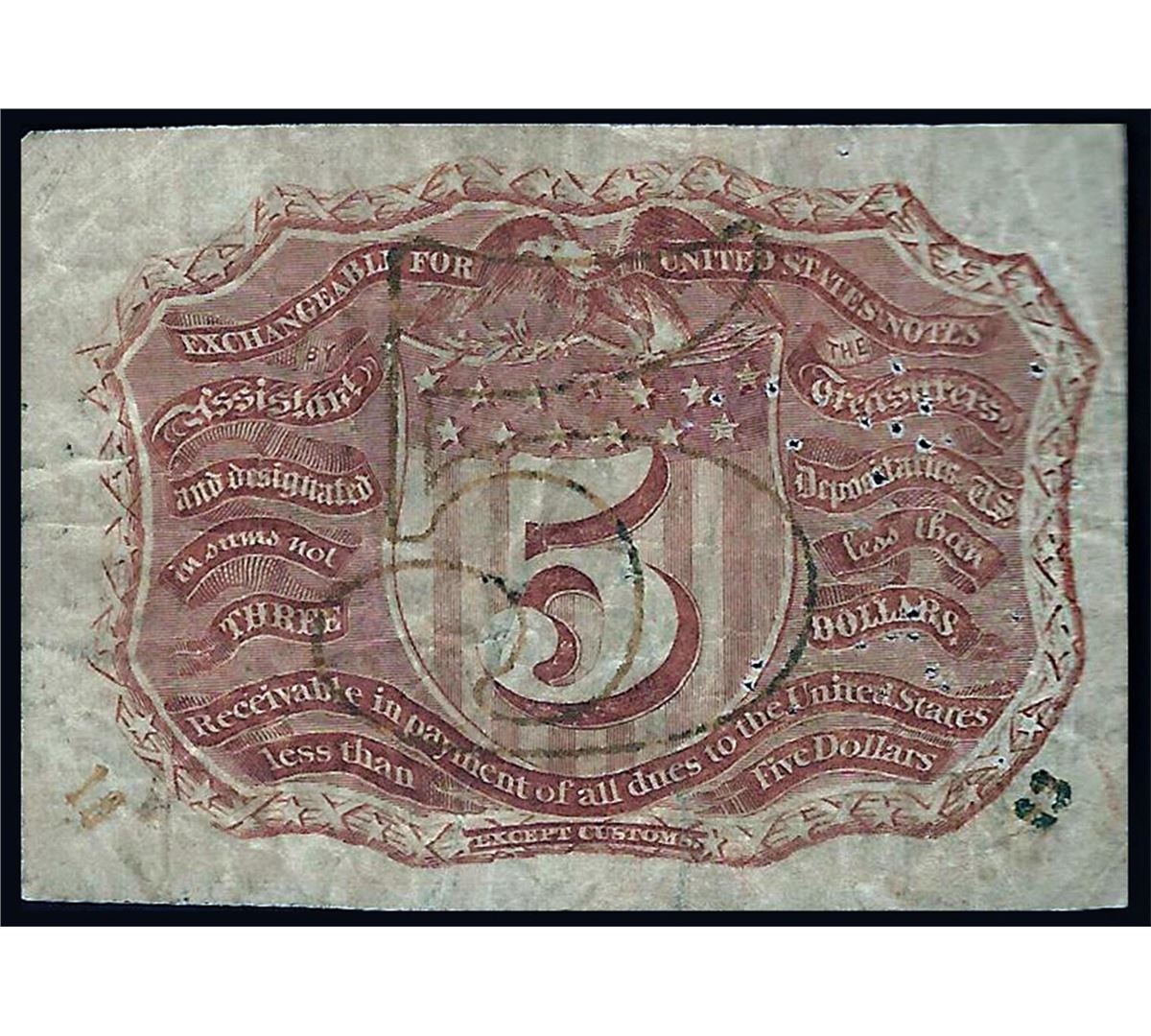 March 3, 1863 5 Cent 2nd Issue Fractional Note - Pinholes
