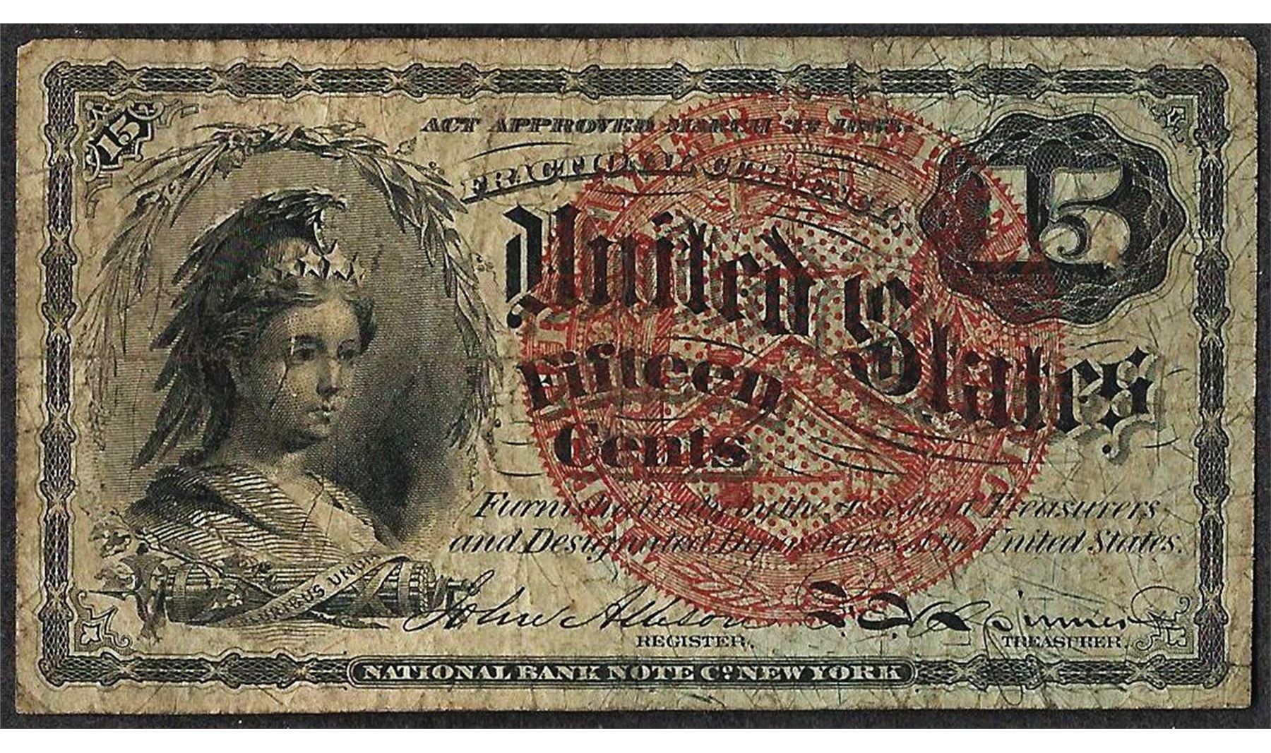 One March 3, 1863 Fifteen Cent 4th Issue Fractional Note.