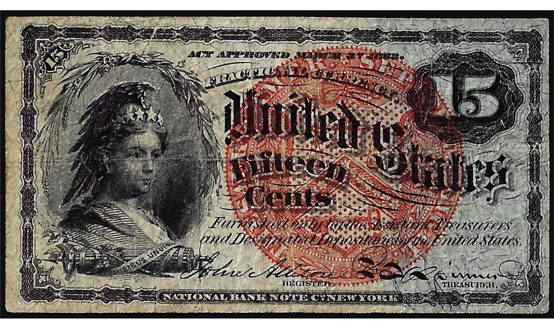 One March 3, 1863 Fifteen Cents Fourth Issue Fractional Currency Note.