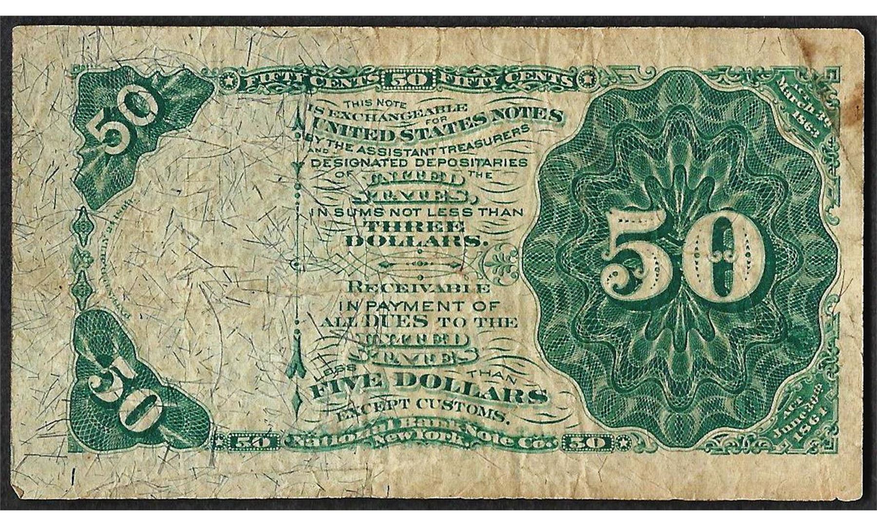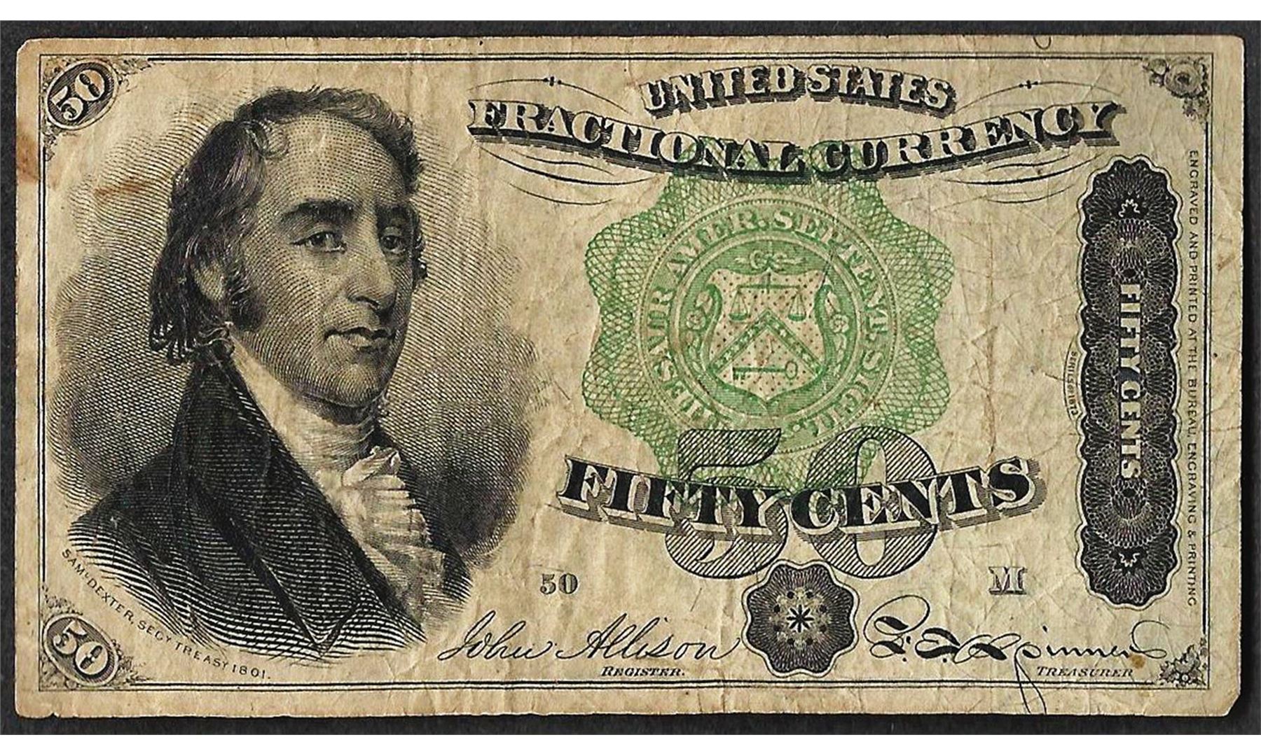 One March 3, 1863 Fifty Cents 4th Issue Fractional Note.
