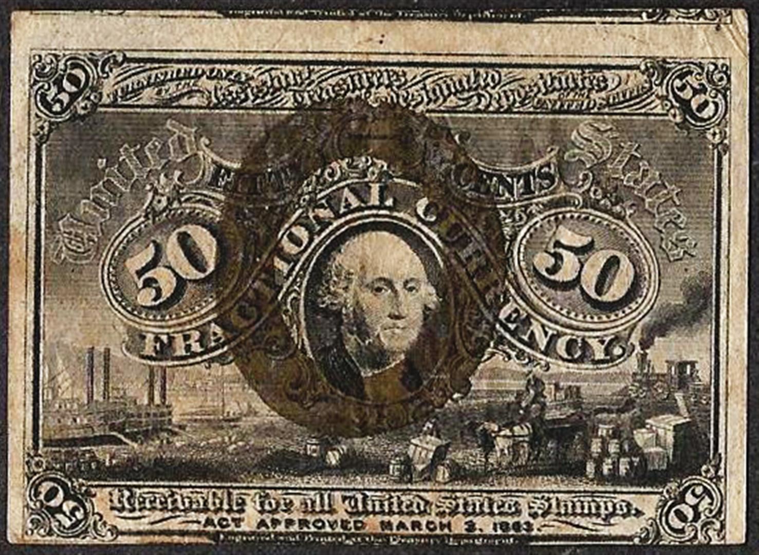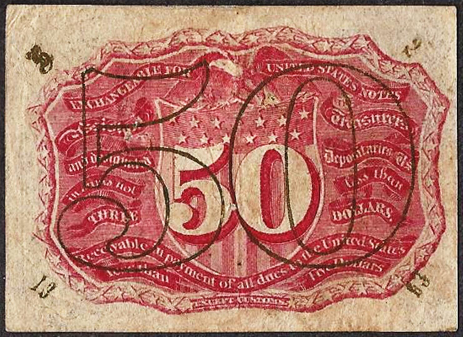 One March 3, 1863 Fifty Cents Second Issue Fractional Currency Note Red Back.