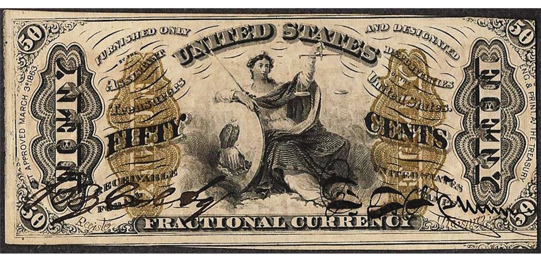 March 3, 1863 Fifty Cents Third Issue Justice Fractional Currency Note