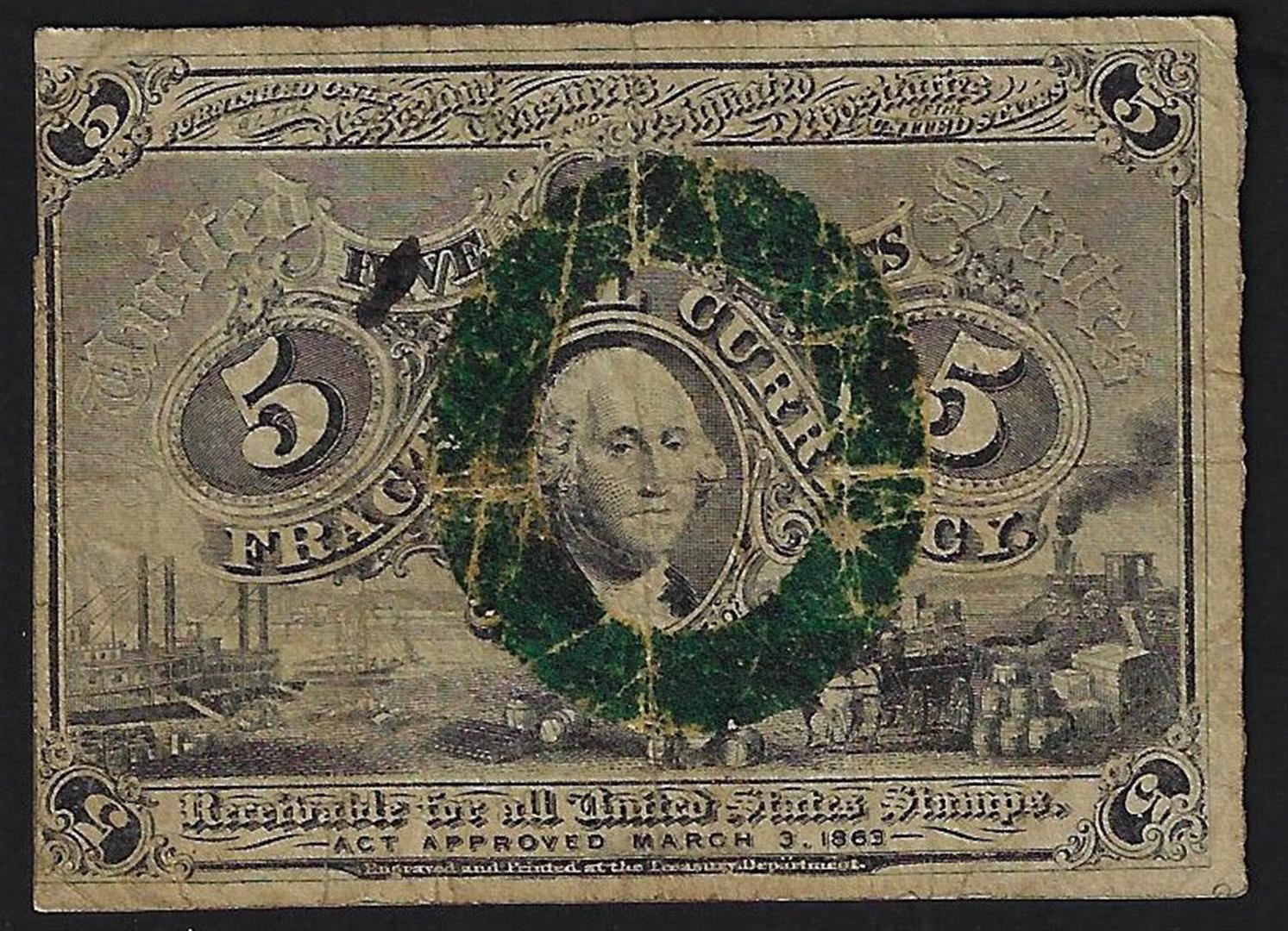 One March 3, 1863 Five Cent Second Issue Fractional Note.