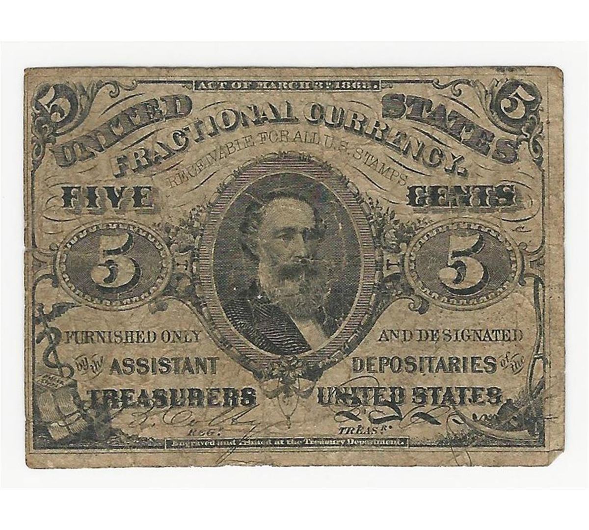 One March 3, 1863 Five Cent Third Issue Fractional Note.