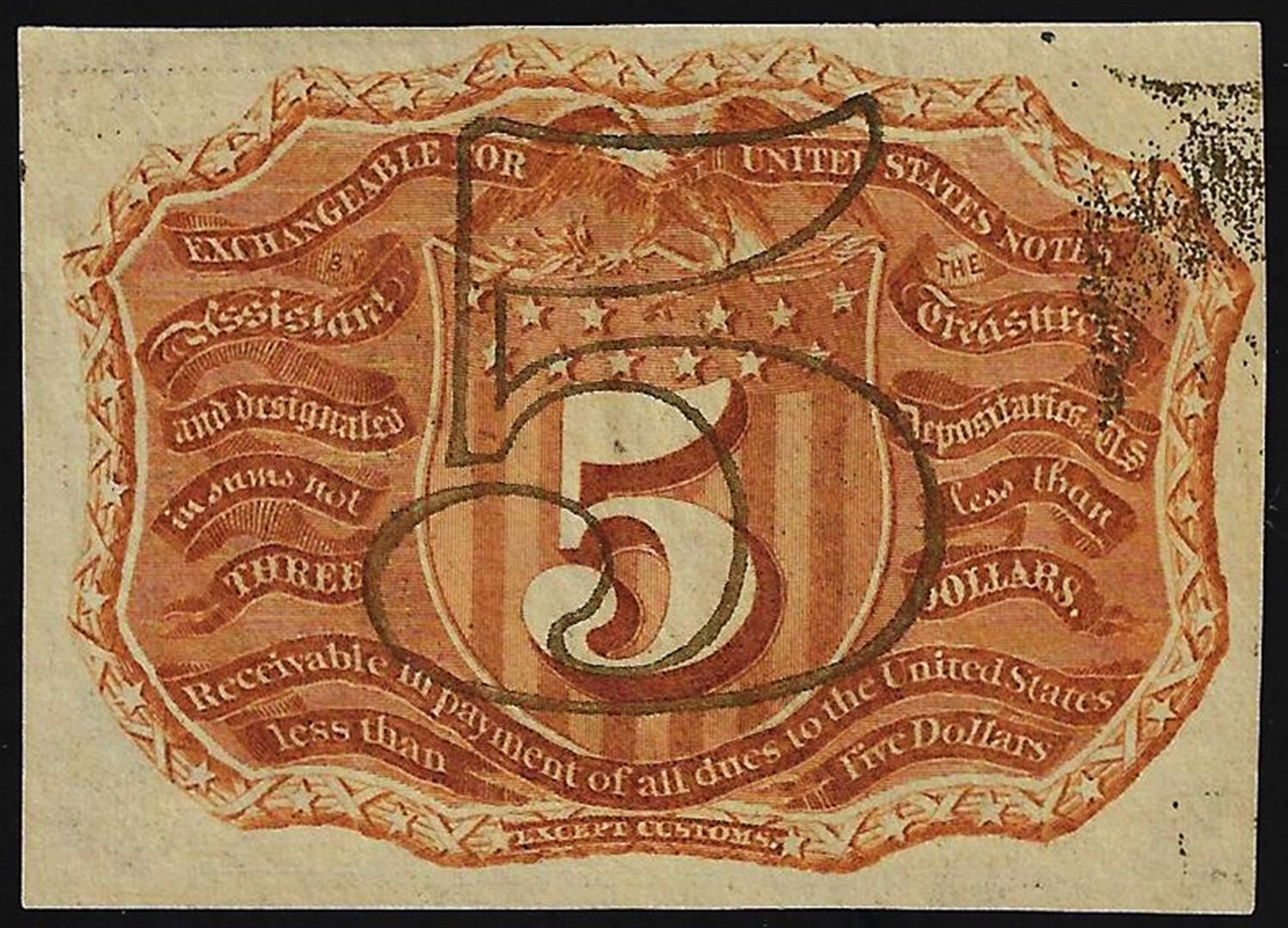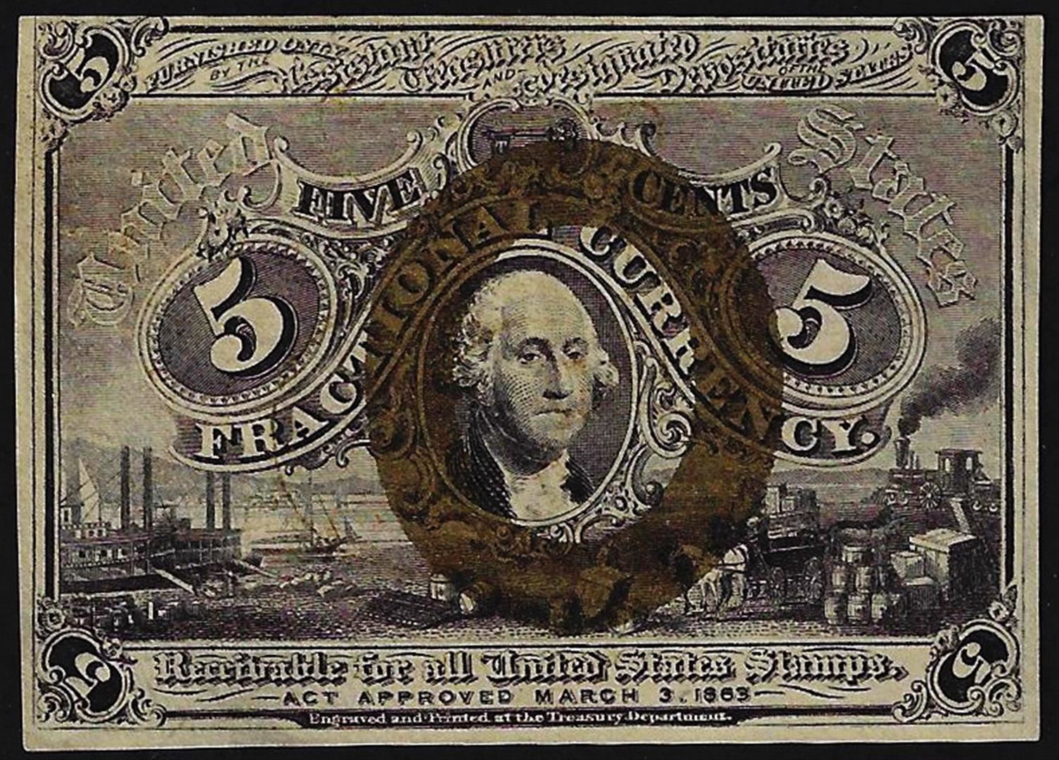 One March 3, 1863 Five Cents Second Issue Fractional Currency Note.
