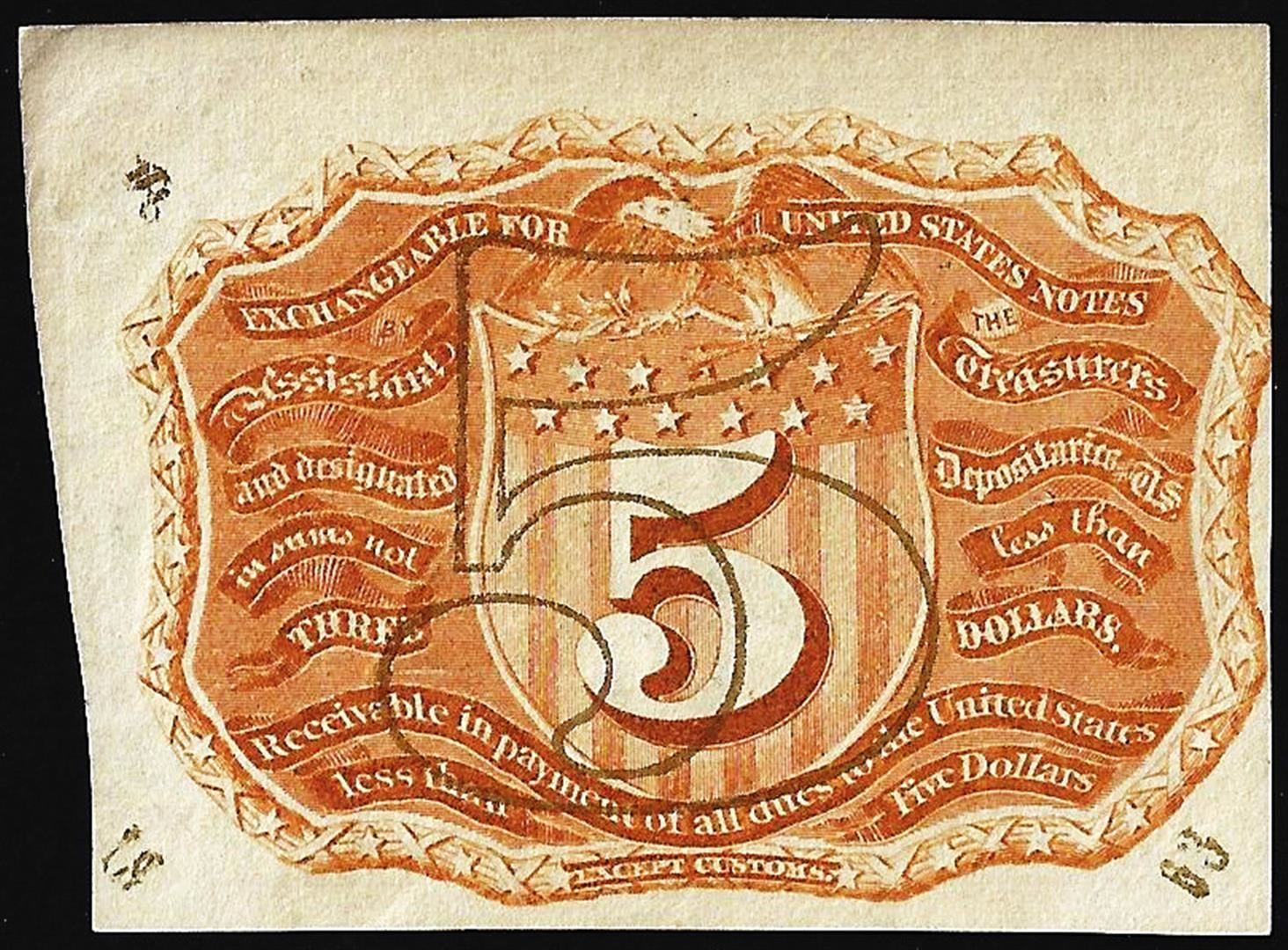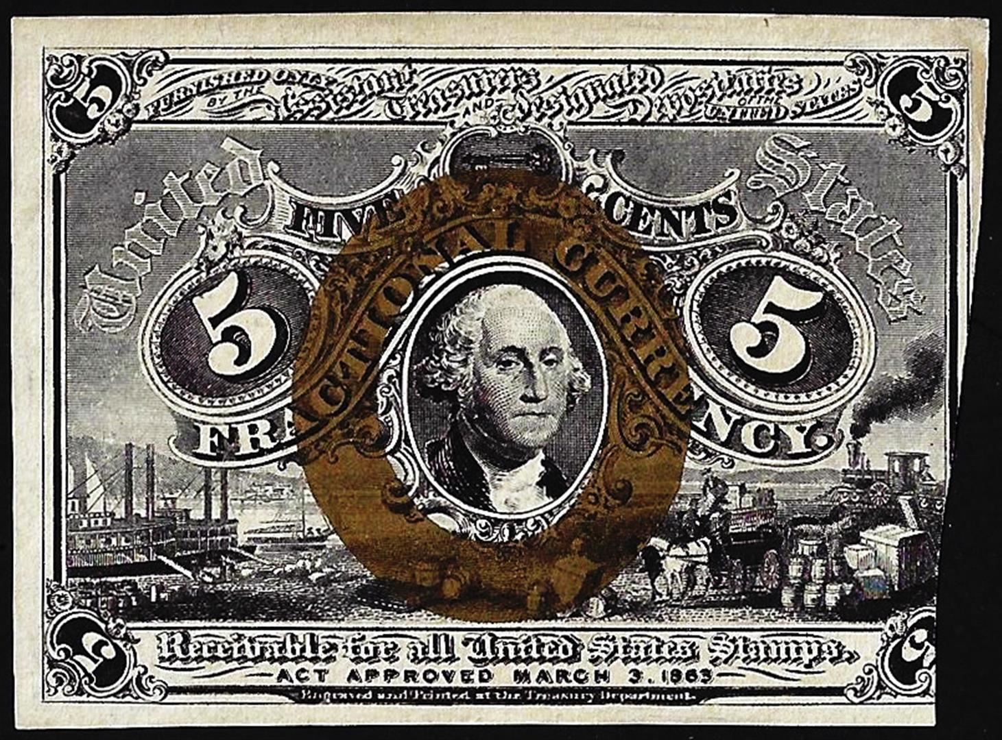 One March 3, 1863 Five Cents Second Issue Fractional Currency Note.